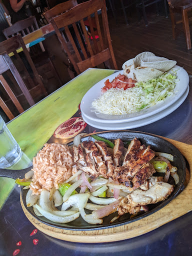 Read moreThey provide you with chips and salsa. They have hot and mild salsa. The hot was not super hot and had good flavor. The mild was very sweet. We ordered the steak fajitas for $18. It was enough for two people to share. It comes with a large side of shredded cheese, lettuce and diced tomatoes. It came with rice but we requested refried beans. For $4.95 you can get a side of white queso. The meat was flavorful and served on a sizzling plate with sliced onion and green peppers. The tortillas were flour and from a package.