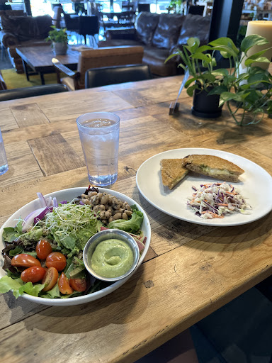 Read moreI was so excited to try the food at Bluecorn after reading the reviews, but sadly I was very disappointed with my meal. It’s a dimly lit space filled with comfortable seating and large glass windows to watch the adjacent candle-making assembly line. You can also browse and purchase locally handcrafted items ranging from jewelry to candles. I ordered the Power Salad. Beautiful display of food, however the radishes looked pre-cut as if they had been sitting in the fridge, there was no taste or freshness to the lettuce, and the goddess dressing had absolutely no flavor. I wish I could have liked this, but it definitely needs some improvements to the flavor profile and freshness of ingredients. I also ordered the grilled cheese which I would recommend to other customers. It came with a side of coleslaw and was flavorful and hot. Lastly, it may be work mentioning that the food items are extremely overpriced. Paying $14 for an average salad is a bit too much...