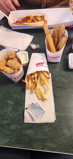 Read moreI go here quite often to get drinks because I enjoy how they taste. However, the staff are almost always the opposite of friendly. I go here several times a week sometimes and almost every single time I am met with very rude staff and I once was even rudely interrupted and cut out over the drive thru while asking a simple question, so I then had to place my entire order at the window with a man who at least was kinda nice. Once there was not a single customer there besides me and had to wait at the window for 10 minutes for a cherry limeade. They often get drinks wrong here too. Usually when I order a slushie with nerds they put barely any nerds, and when I order it with extra nerds with hopes of getting a good amount I'm given even less nerds, and if I order specifically with "extra extra extra nerds" to try and get there attention that hey I want more than half a scoop of nerds in my drink, then they fill the entire drink full of an overwhelming amount of nerds. Pretty pretty if you ask me. I love sonic for who they are and what their drinks taste like, but don't ever come to this one if you want even decent customer service or quality. I'd never come here again if we had a different sonic in town but my options...