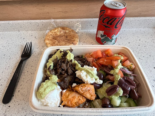 Food wise? Some describe this place as the Middle Eastern Version of Chipotle, and there spot-on. I got both rice varieties for my base, and did half/half beef shawarma and chicken shish taouk. The rice portion --- generous, great ---- the meat portion? No shade, but a bit "stingy" with it.