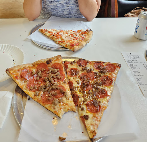 Read moreFirst time trying the pizza here. I came in on a Sunday afternoon so it was empty and quiet in the dining area. My order was ready and waiting for me. I ordered a personal size (12") pepperoni pie and a plain (cheese) slice. I usually order a plain slice when I'm trying a pizzeria for the first time. If their cheese slice is good (according to my standards) then I'm persuaded to try the other menu items. Service was quick since I was the only one there and had called it in earlier, excluding a walk in customer. The plain slice was good; flavorful and fresh. The pepperoni slice was also good and fresh. The counter guy was nice and courteous. He explained that the promos displayed on a chalkboard were during weekdays at certain times. The order came out to $18.75 which wasn't bad considering the rich neighborhood it...