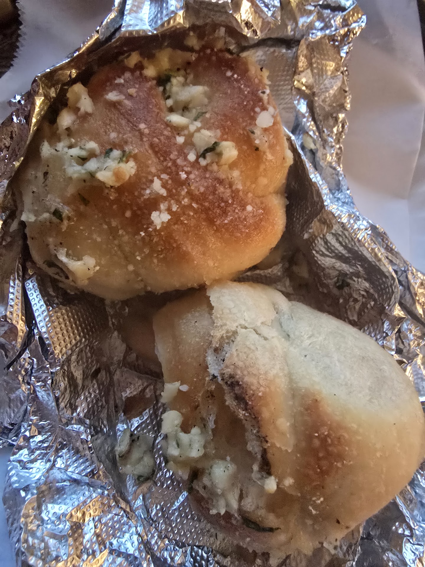The SMELL here- Was fantastic. My sense of smell is normally dead, but the savories of garlics and baking goods really really stood out to me. I was incredibly pleased at how nicely the goods on display were explained when I asked, and ended up getting a side order of the garlic knots. (By the way, we ripped into the knots in the parking lot- Fluffy, warm, the bread was pretty and the pungent garlic NAILED it all together