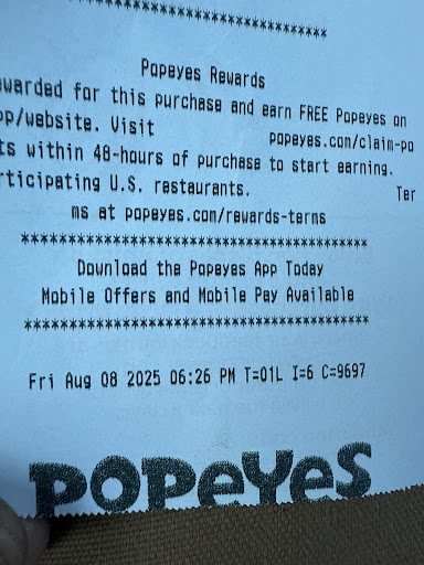 I would give them half a star if I could. I think the first 5 or 6 times we went our orders were always wrong. I went in there and they were not busy and had 10 people working and only 2 people in line, me and the person in front of me. The cashier milled around behind the counter for 2 or 3 minutes ignoring both of us customers. We watched and finally she walked to the register to take the customers order. She finished up taking his order and as we walked up I asked if they were out of anything. They have been known to not have chicken tenders, chicken sandwiches, fries, shrimp, yes I have witnessed first hand every single one of these. So I get to the counter and the cashier turns and walks away. i stand there and watch 4 employees talk and joke and act like I wasn't even there. After about 3 minutes of standing there wondering how long are they going to wait to take the money an employee finally walks up to the register and asks me if I ordered yet. I thought yes, I'm gonna be able to order some food and get back to work myself. I told him, no I still need to order. He nodded his head and loudly asks the 3 other employees standing there how to clock in. I guess they clock in through their registers. Another employee comes over and helps him clock in and then they both turn and walk away. So I walked out and went to Chic Fil A. We gave Popeyes a try one more time. Order was wrong yet again, food was cold, and the tenders tasted weird like they were stale. The kicker was, my son went up to the counter to tell them our order was wrong. The employee looked at him and said the order wasn't wrong, that he just forgot to put everything in it. Go figure .... I was so excited to get my favorite chicken tenders in town, but it would be hard for me to ever want to go back. It's almost like they don't want people to eat there and try to make sure of it by providing zero service and poor quality food. If that is the goal ... I'd give you 5 stars,...