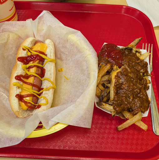 Read moreThis place is incredibly average... Not bad, not great, just average... Service was extremely underwhelming, I felt as if I was an inconvenience rather than a paying customer, but the food was out in a timely manner, so props for that. The atmosphere was bland and uninviting, imagine a closed down subway with a few wal-mart "art" pieces strewn across the walls. The condition of the store was average as well, not dirty, but definitely not clean. Just sort of cluttered. The food was decent, good prices, so it has that going for it. The chili cheese dogs could definitely use more cheese, there was barely any there. Maybe all this negativity stems from the fact that I have been spoiled all my life by having THE Hot Dog Shoppe in Warren, Ohio just a stones throw away from my house, but what what else should I expect, ...