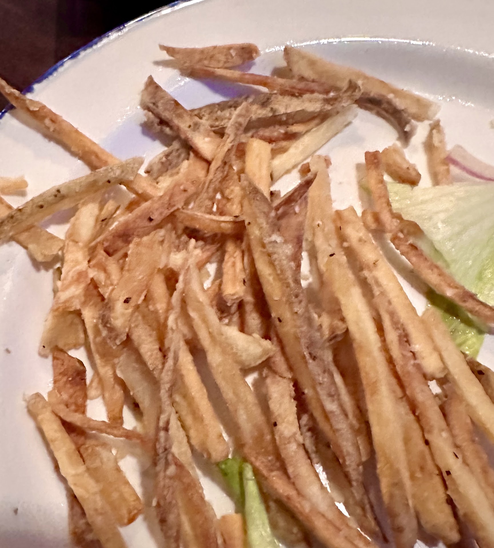 it is served with very crispy thin strips of freshly cut potatoes. BUT it is saltyš«¤.