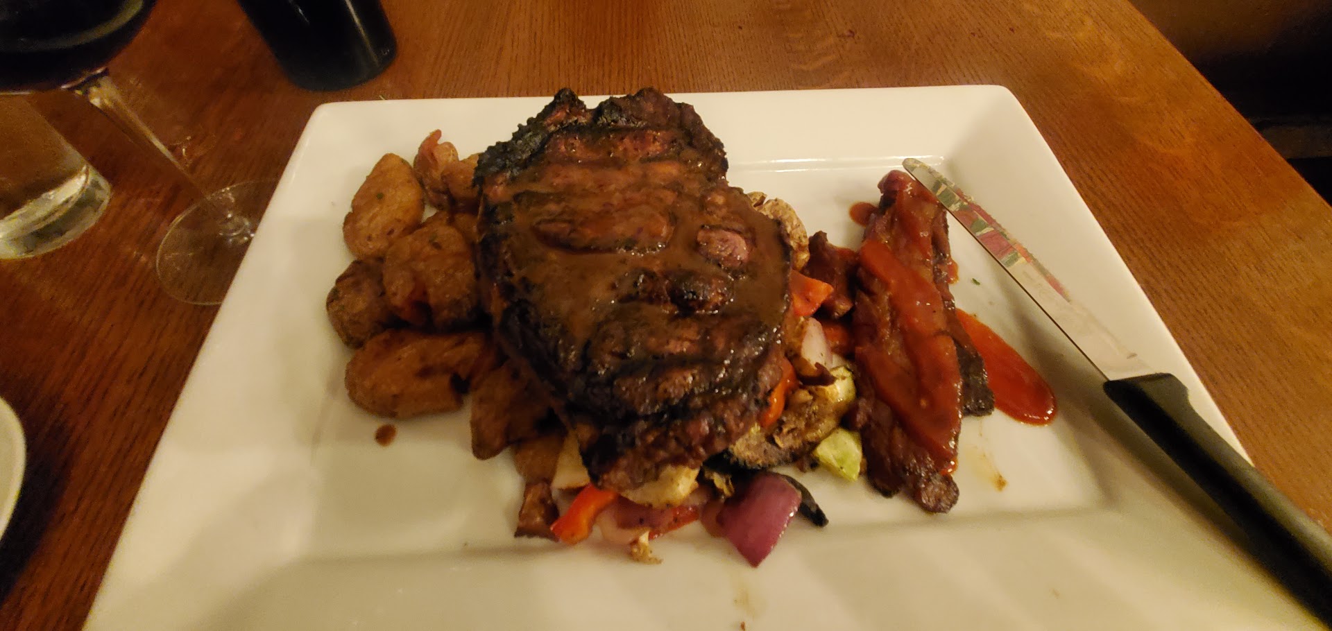 Ā Ā Ā Read morePretty dismayed. My wife and I have gone here a bunch of times and it was always excellent. However we go tonight and let me preface it was a full house so everyone is flying around busy as hell. We ordered, I got the 3/4 lb ribeye and my wife the seafood risotto along with the brussel sprouts for an app. Sprouts came out fine then our entrees. My wife's risotto was soupy? Still ok but she has never gotten it like that. I got my steak that came with fries and 6 shrimp, which I started with. Cut into my steak that ordered medium and the whole thing was completely raw. It was certainly seared but they obviously did not bring this to temperature. No big deal stuff happens, upon letting the waitress know she responded "well I thought you said everything was fine". Mind you this was pre cutting into the ribeye. So I just send it back not interested in having it re cooked or replaced. She comes back and said we took half off due to you eating the shrimp. Which hey I did eat it so I should pay but no apology no manager coming over and at least saying sorry for the raw piece of meat we threw on your plate. We essentially paid 65$ tonight for sprouts and two soft drinks. So essentially the service was terrible and the food was served raw with zero recourse or apology. But thank you for taking off half the price of a steak I couldn't eat. But no biggie just another restaurant we can take off the list and...