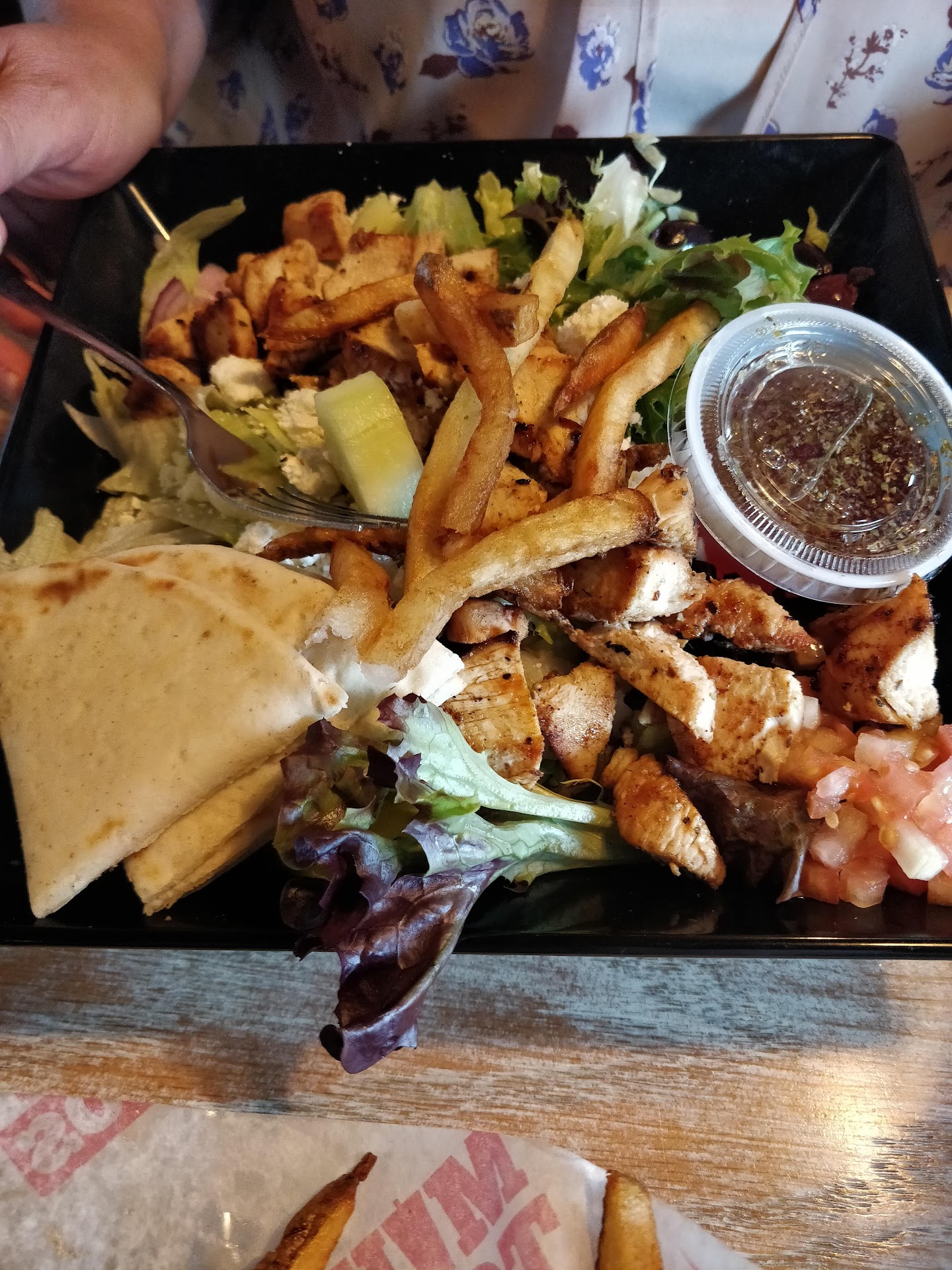 My friend ordered the regular gyro, while I went for the chicken gyro. Right away, I could tell this was going to be a satisfying meal. The flavors were bold, well-balanced, and incredibly filling. The pita was soft yet held everything together well, the meat was seasoned perfectly, and even the toppings played their role beautifully. Normally, I’m not a fan of tomatoes, but these were fresh and complemented the gyro in a way that actually made me enjoy them.