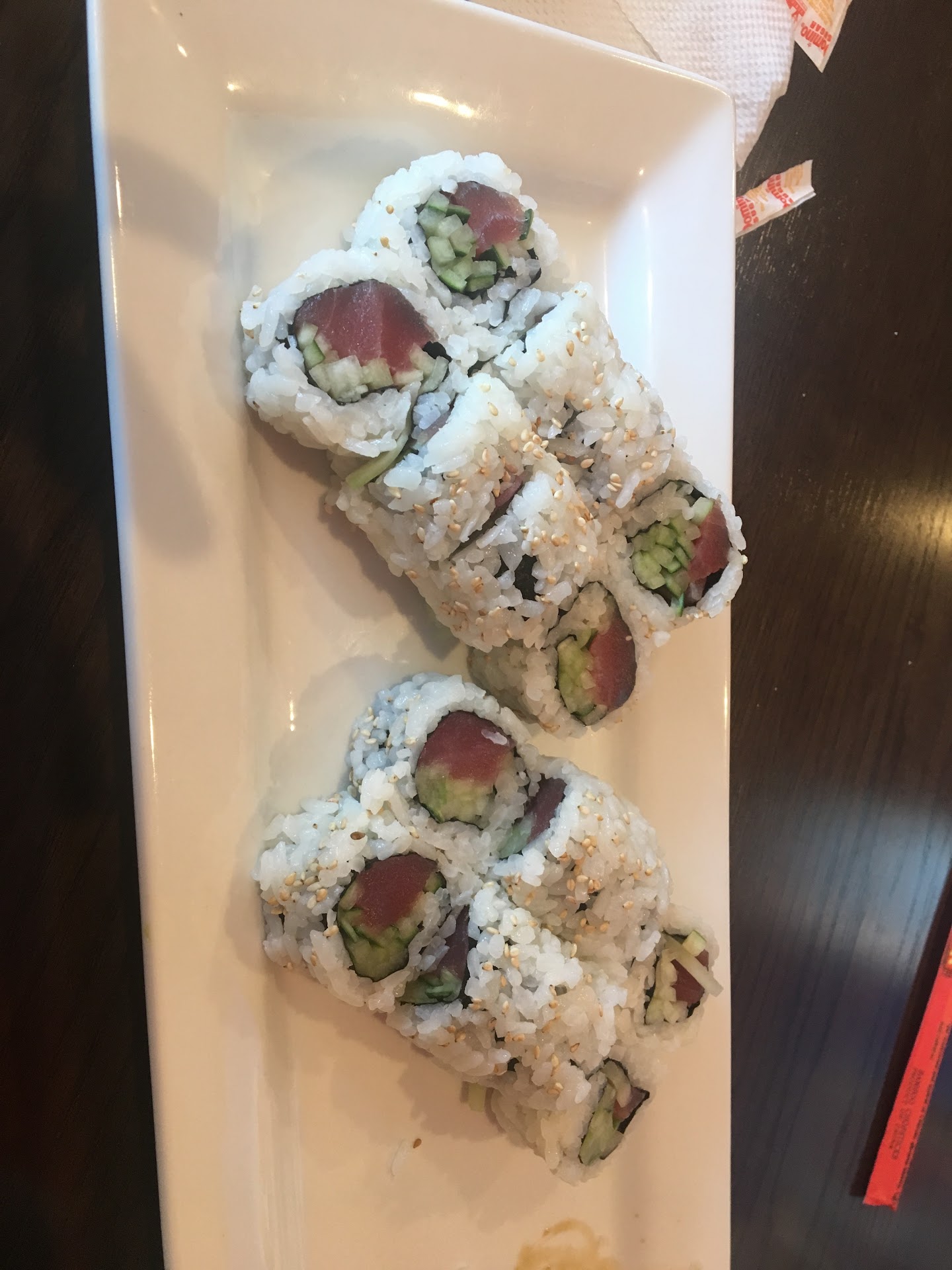 Read moreI'm very simplistic in regards to my sushi. I don't like wasabi or pickled ginger which is why you don't see it on my platter. The first time my order came out, it included avocado, which I also don't like. This wasn't mentioned in the menu listing for what I ordered. However, they replaced my order without issue. As I was sitting there, two other customers had issues with the menu not giving complete listings of certain ingredients, which can be a serious issue for people with allergies, such as avocado. So in my opinion, they need to redo their menu. One poor girl decided to suffer through her spicy meal which didn't have an indication of spicy on the menu. She looked so unhappy! The other had ended up with duplicate items but was able to get a substitution, without issue. Overall, my sushi was delicious! And the prices were very reasonable. Service was fine. I will be...
