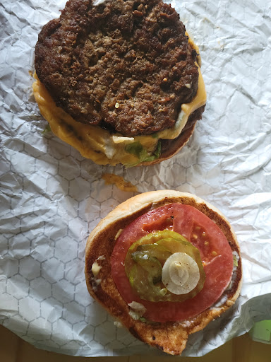 Sweet & Spicy Gouda double burger combo--it is delicious, my favorite burger on their menu, BUT....it is the MESSIEST thing I've ever gotten from Braum's. I just ordered this -minus the bun- at the drive-thru 3 days ago, checked the bag for a plastic fork & knife...not there (why??), so I set it on the seat beside me & drove to my house 8 min away.