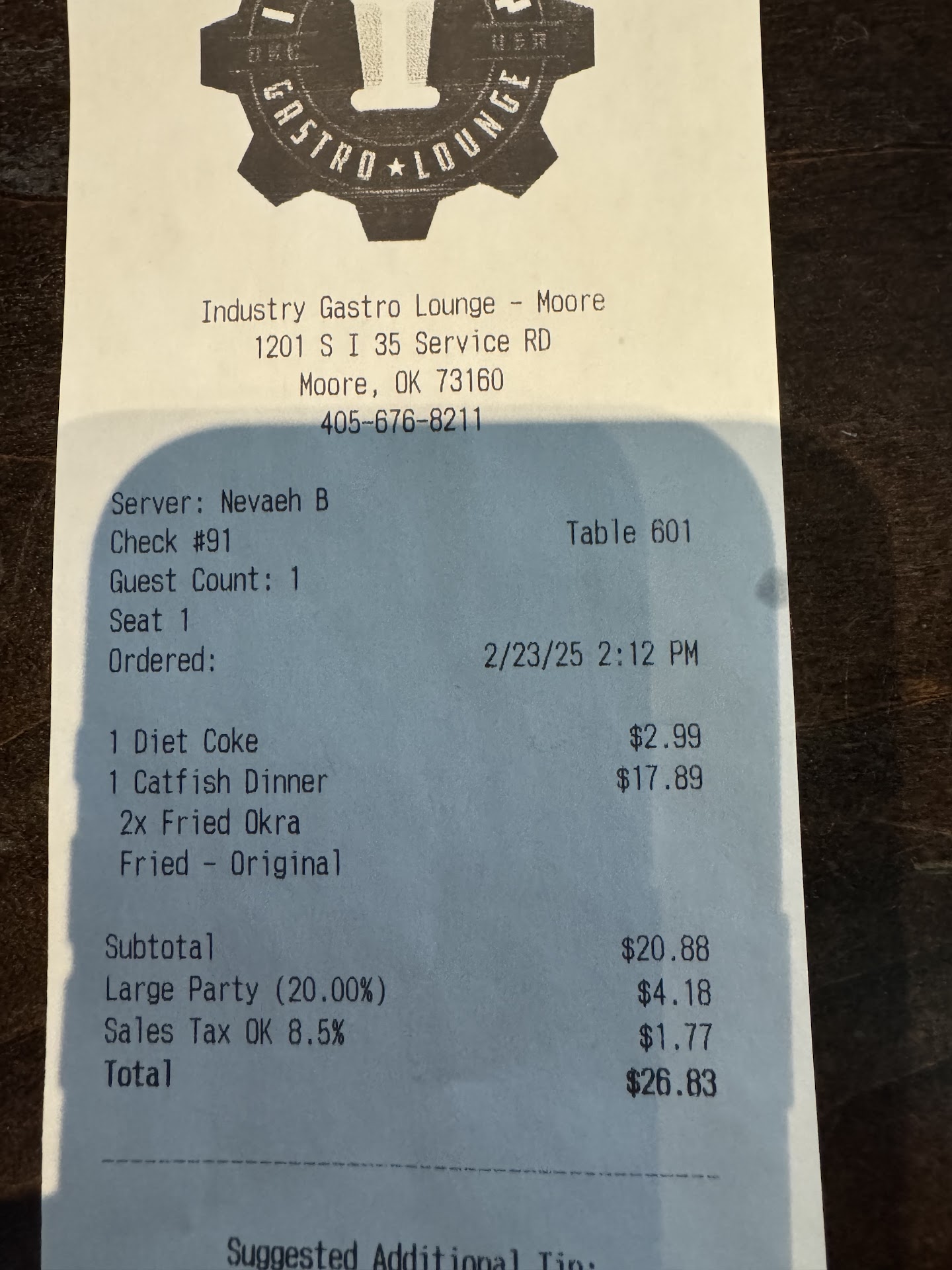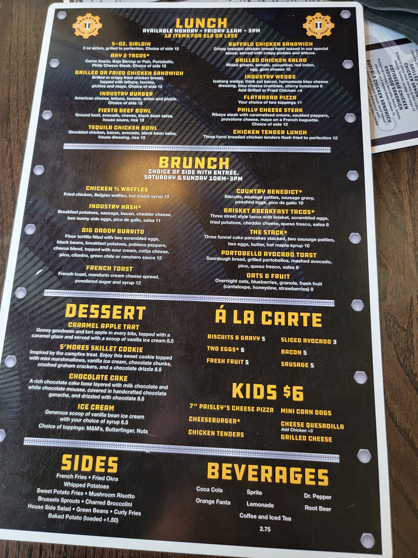 First time guests. It did not take long to be seated. Once seated, it did take some time for our server to arrive. The server asked what we would like to drink. I ordered the water and sweet tea, my wife ordered water. The water had an off taste. We placed our order. I asked the server if a certain hot wing sauce was really hot. The server was not sure. I asked if I could have a sample of the sauce to taste. Took a little explaining to the server what I was asking. The server obliged. My wife ordered the Hickory Burger (well done) and Fried Okra. I ordered 6 Chicken Wings (breaded. The menu said, "smoked, breaded, or traditional".) and the Hangover Burger. After a little time, the server brought me smoked wings with hardly any sauce. I told the server that is not what I ordered. I ordered breaded. The server asked if I wanted the wings taken back and brought breaded. I told the server yes. The server returned with the same wings and informed me the cook said they do not have breaded wings and left the wings. Our server appears to be unfamiliar with the food and menu. Our food was finally brought by different servers. We informed them it was not our food.They looked puzzled and took the food to a different table. Two different servers brought us food. Again, it was not our food. My wife informed them the server behind them had our food. My wife's Hickory Burger was not well done, was barely warm, and had no hickory sauce. Her Fried Okra was cold and soggy. The Hangover Burger had a little bit of mayo, no other condiments. My wife had to flag down our server to get hickory sauce. There are no condiments on the table or offered when ordering. No ketchup. No salt. No pepper. None. I finished my meal and my wife finished some if hers. The whole time we were there, the light above our table would flicker. Good thing neither of us had a condition that would be triggered by our personal strobe light. Our server returned to see if there was anything else we would like. I asked if they had dessert. The server informed us no, but they did have some type of apple Danish thing. We declined. Our server presented the the bill. I entered my credit card and immediately a tip option appeared on the handheld device. A little uncomfortable situation with our server hovering. Right after the tip option, a survey appears. I clicked on one option and could not read the rest. The server pressed "Skip" and the survey disappeared. During our dining experience we observed the dining staff hardly being attentive to their customers. We received no compensation for the lack of advertised items. I understand this establishment is newly opened, after a long delay. However, I would have expected the staff to be better trained and the menu tweaked to be accurate of the...