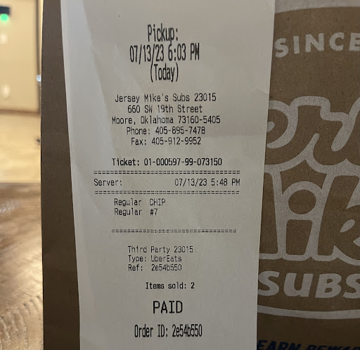 Read moreJersey Mike's had been my favorite sandwich shop for over 15 years; top notch friendly service and "care" in making sandwiches. This week I made my third stop at the Moore location, and it will be my last. I always order three wraps, to go; I ALWAYS include a healthy sized tip. Trip One: Ordered with App. Arrived on time - my order not started- no apology, just a sour look from the counter person saying I will have to wait. Order is finished and slung onto the counter, no thank you or even a smile. Upon openeing my order, the "Wraps" are not "wrapped" properly and fall apart in my hands and onto the floor.