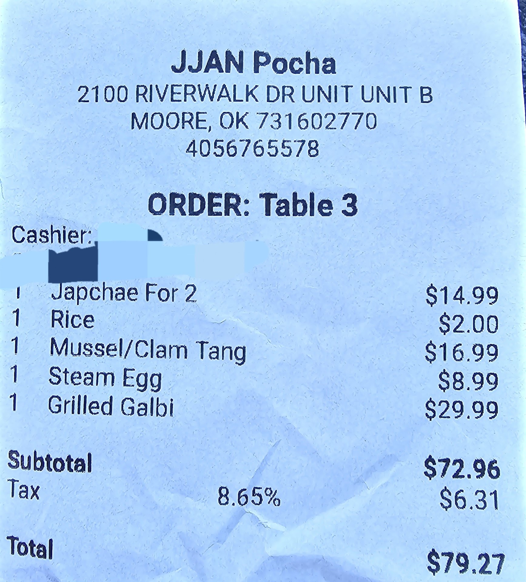 Read moreTLDR: JJAN Pocha's Korean food is "Okay" tasting, small portioned, and overpriced. Food: 0/10, You will either go home hungry or broke.