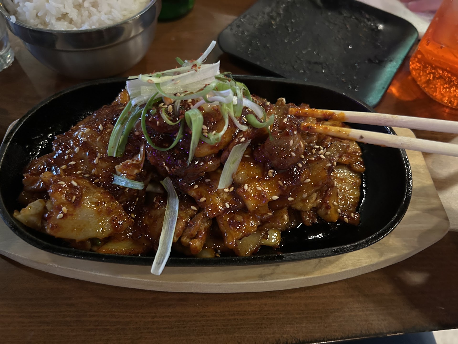 Finally, the food here definitely succeeds my expectations. I typically order the sizzling cheese buldak, the corn cheese, and the grilled spicy pork, and the place does a great job at consistency. The cheese for the cheese dishes were perfectly melted, and the sauces were definitely flavorful and savory. I ventured and explored more food items the other few times I was here, and I also feel like the japchae, the soondubu, and the skewers (especially the pork one) are also worth getting as well!