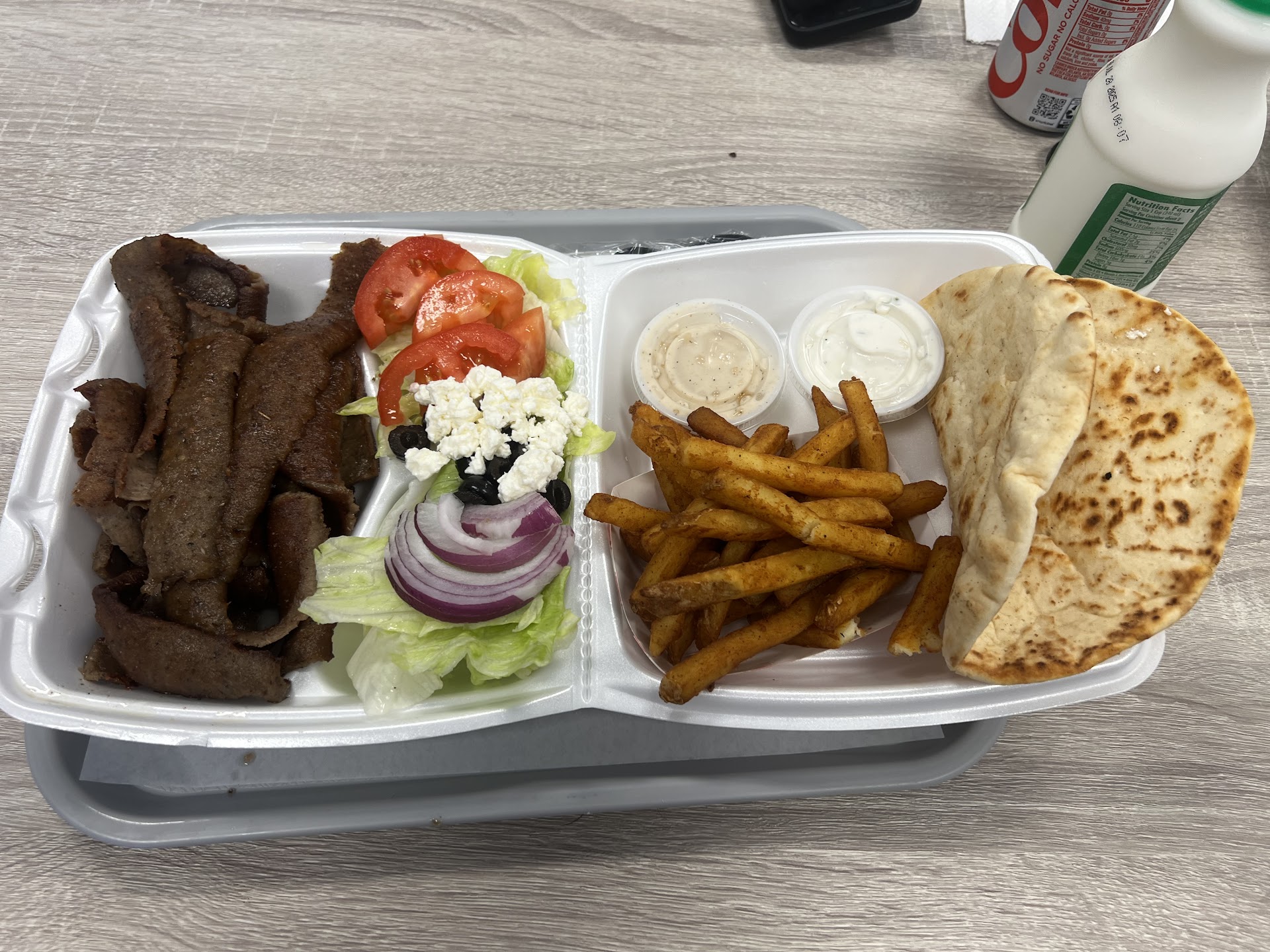 Read moreQuaint little Greek food shop with mom and pop shop vibes that serves a little bit of everything but specializes in gyros. I could see this being a great snack spot if they were open a little later due to the wide variety of quick bites. We tried the gyros which were stuffed full and very good! We also ordered some fries and mozz stix. They tasted nostalgic like star skate. Everything is individual no meals, must pay for each separate item but they are priced fairly. The ketchup on the table did taste a little off, so maybe skip that. Eating at the location felt a bit awkward. I would say this is more of a “to-go” order restaurant. Convenient location off...