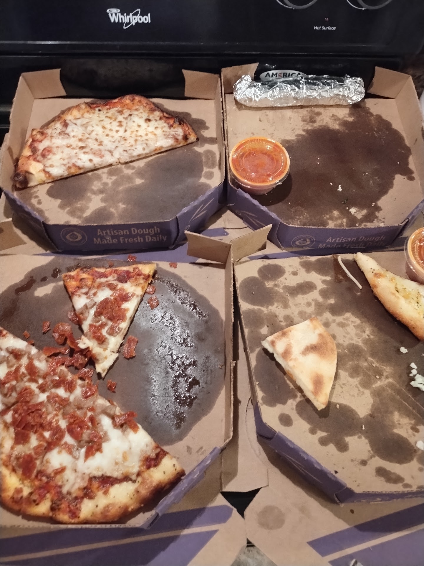 The happy hour menu consists of several appetizers, pizzas, and alcoholic drinks! We saved over 17 dollars by going to their happy hour! I highly, HIGHLY...