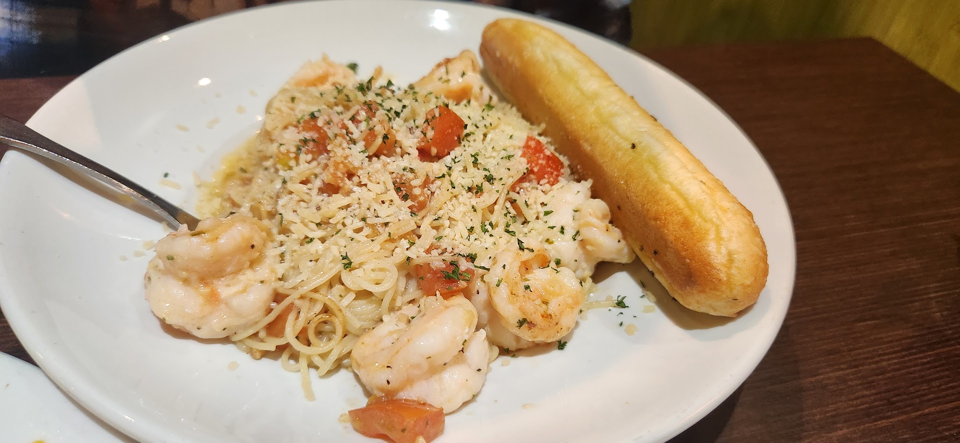 For the second entree, we ordered the shrimp scampi. The angel hair pasta was so flavorful! So buttery and garlicky! The shrimp were succulent and flavorful.