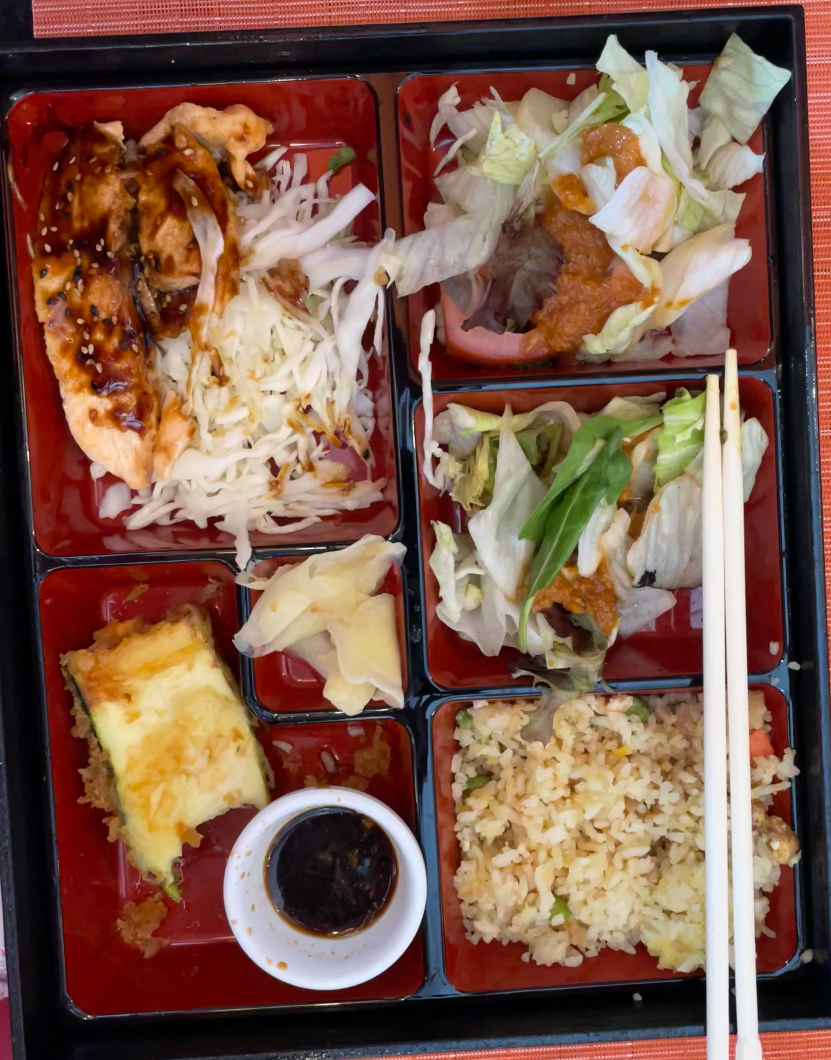 This was our third or fourth time here but the first after their reopen and new management. Our waitress was pleasant and we were greeted by all when we entered and were sat at a table within no time. Our drink order went in and not long after receiving our drinks we ordered. We ordered lunch bento boxes. My salmon(sake teriyaki) was cold fishy smelling but remarkably didn’t taste like teriyaki anything. I am guessing my salmon was cooked not today. My salad was brown and and past fresh. The vegetable tempura were good, but you don’t want to pay $13 for some deep fried vegetables. My husbands Bento box was chicken teriyaki and the saki teriyaki, now my husband will eat just about anything but not today his chicken was inedible, and his salmon was slightly warmer than mine, he was very hungry so he ate more than I did. The mint that came with the check was wet inside. If I’m being very honest, I have to admit that my prior experiences at this establishment were better under the old management. You shouldn’t encourage people to give reviews when the food sucks. Then again I am in Oklahoma flatland locked state so perhaps I just shouldn’t expect anything more than what I got, which was...