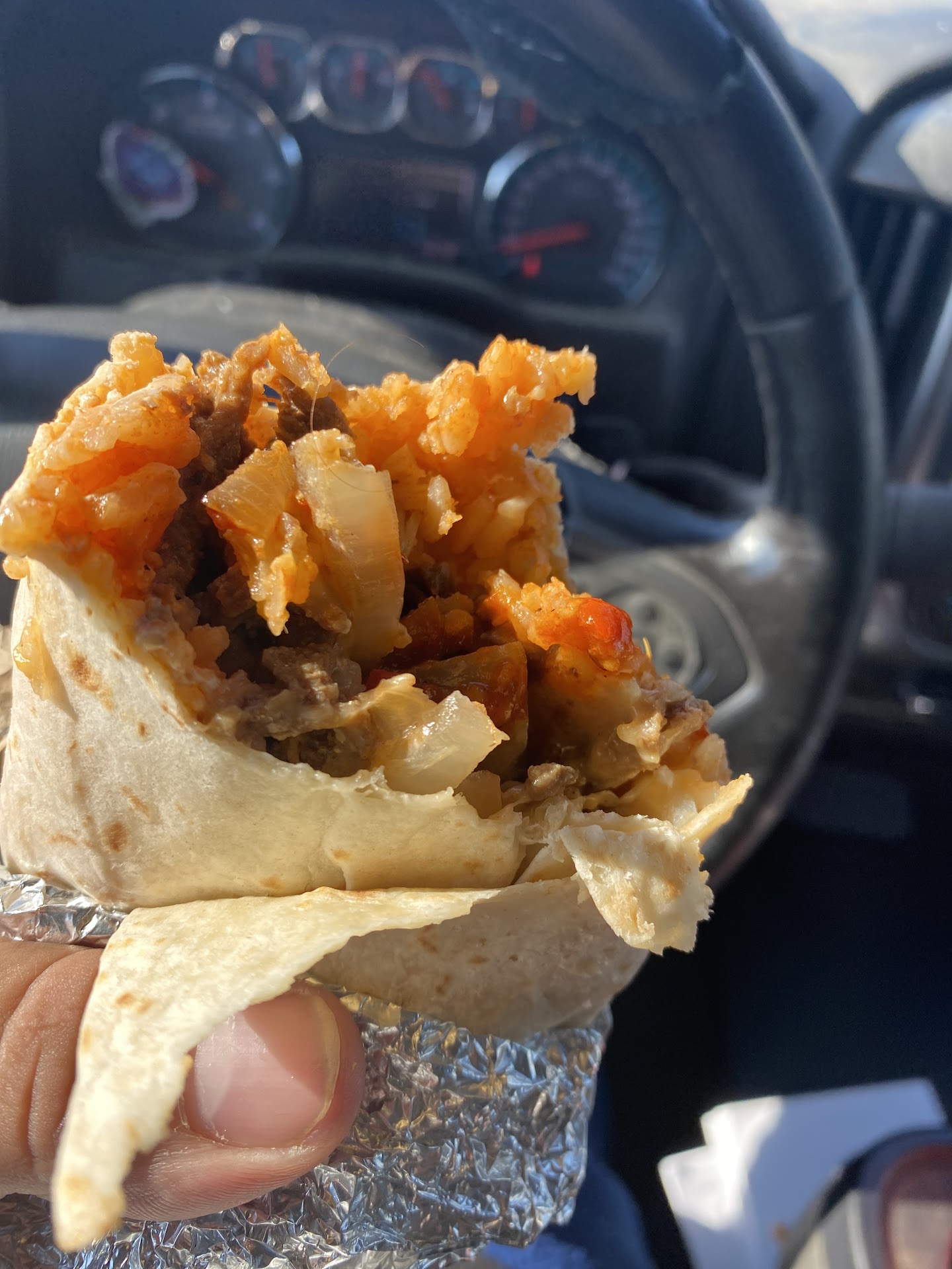 I’m gonna start off with saying that they were very nice. I definitely did like that. I ordered the burrito plate and so far it’s really good. The burrito is very good. The only thing I didn’t like, though the beans were a little too liquidy for me that is the only thing that I did not like the portions are really good. Really wish they would put the sour cream on the side. I don’t really want touching everything but that’s fine. I’m not too picky. Just wanna give an honest review. The chicken is absolutely amazing. The food is very fresh way better than Taco Bell for sure. Also, the pricing is absolutely phenomenal. Probably one of the cheaper food trucks that...