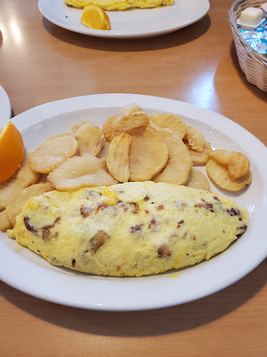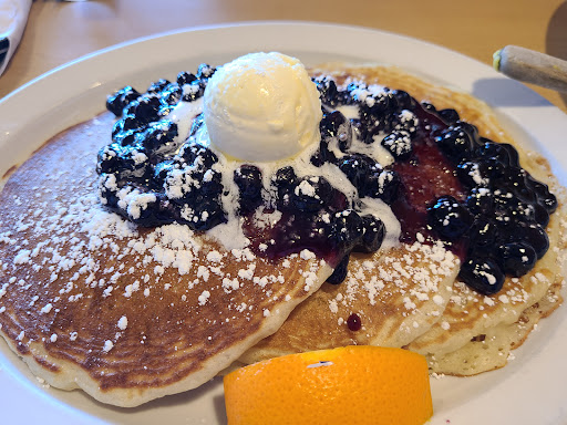 Came on a Sunday afternoon about 1230pm, was quoted 35 minute wait. We only waited 15 minutes. The place was packed, but after eating here I understand they are very efficient. Sara was our waitress, super nice, and friendly. I ordered Eggs Benedict. The eggs were cooked perfectly, yolk ran when cutting through. It had a nice thick cut of round canadian bacon, and the hollandaise sauce had the perfect taste. Not pasty or lemon. It came with hashbrowns those were cooked perfect, crispy but not greasy. I also ordered blueberry pancakes with blueberry glaze. The picture on the menu looks exactly like the plate. You can have blueberry cooked inside, and on top. My other half got Sirloin, eggs, and hashbrowns. It also came with this really nice thick toast. You have a choice of ribeye or sirloin. Get it medium rare it will always be more on the medium side with little pink. As we were leaving this nice lady to the table next to us got fried chicken. It looked lightly breaded, and she said it's so juicy. I will definitely be back. Everyone is very nice, fast efficient, and...