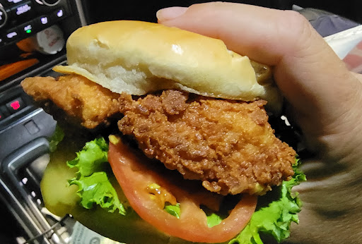 Now, let's not forget about their legendary chicken sandwich. One bite of that crispy, juicy chicken nestled between those pillowy buns, and I was transported into a state of pure chicken bliss. It's impossible to keep a straight face while devouring their heavenly creationâmy taste buds were doing a happy dance, and my car seat even joined in with a jiggle!