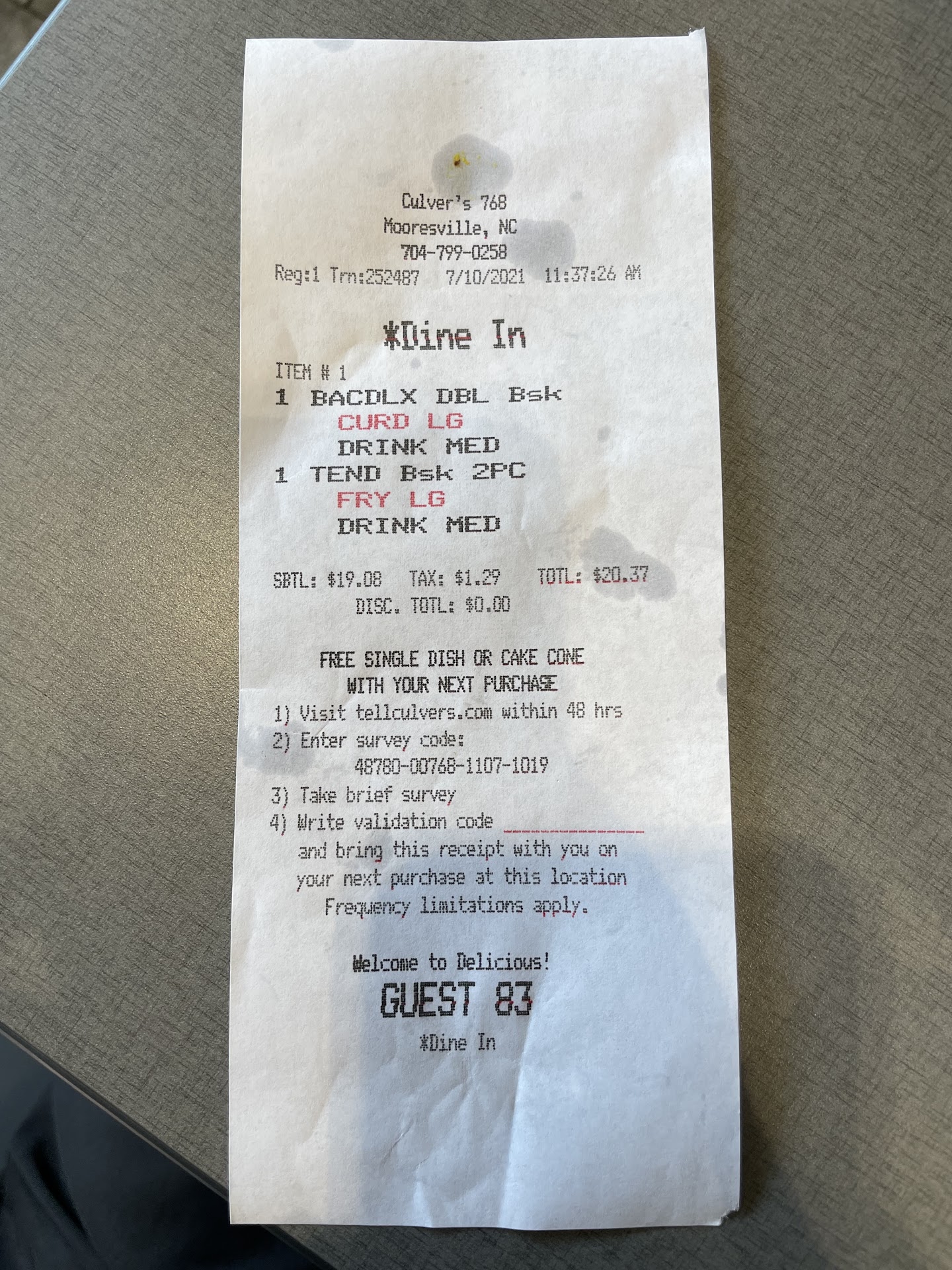 Read moreSo...As a local downtown Mooresville business owner, I know the results and consequences of reviews. Some are accurate, some are obviously bias! I write this after 10 visits to our relatively new Culver’s business.