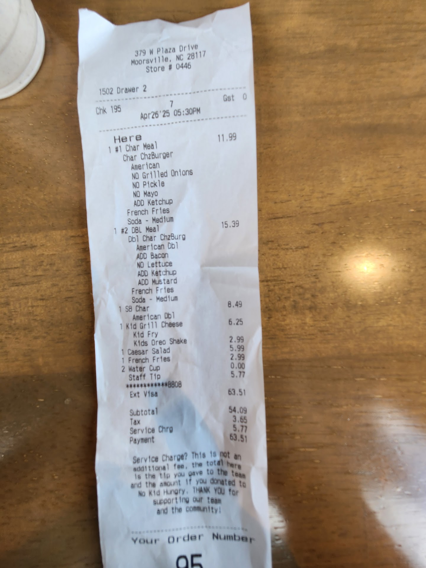 I HAVE NEVER BEEN SO DISRESPECTED IN AN ESTABLISHMENT! I just left! I ordered two Santa Barbara chars, green beans and two waters. We got our food and noticed there were not two Pattieās on our burgers and the Santa Barbara is a double char. I took them to the counter and the young woman said she would remake them. The manager Charles then proceeded to disassemble my burgers in front of me while proclaiming there were two Pattieās. When I told him do not argue with me look at my burger and he then says yes thereās not one on that side but we will remake it. Both of my burgers were single. He continued to argue with me and when I told the young lady I wanted a refund. She went to Charles and let him know and he kept arguing with me. He then stated that he needed my name and email and that corporate handles refunds. He handed me my receipt and told me to write my email and name on the back and then I gave it back. I was saying how it was ridiculous that the way I was being treated and argued with and he repeated āwhatās ridiculousā. I now no longer have a receipt for my transaction. As well as I will NEVER GO BACK TO THIS LOCATION! I will also be sure to make sure I NEVER TELL ANYONE TO EAT AT THIS STORE! I have been eating habit for years and was so excited when they opened in this sad state of North Carolina and I have never been treated this abhorrently! I left with no food or money back! In what world is that ok? And to top it off I watched them laughing at me from the window while I drove away! I was not wrong! My husbands burger was also only one patty! This restaurant is too expensive to be...