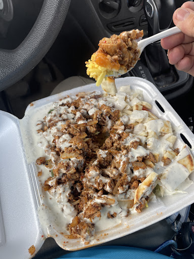First time here, let me get that straight. Food taste and quality i had the chicken over rice with added pita bread and made it spicy. Best pictures item on the menu. Inside overall. Not Beautiful every ketchup bottle squeezed to paper, interior not as “flashy” however lots on the menu had plenty of options however not to much on pictures, personally i like to see what i eat and compare to the plate. Due to the empty nature i like to eat in peace so brought it to my car. At first glance didn’t match the picture and ranch was a little sloppy but it is spicy so i can understand the threat. And it was spicy. Not torturing but just a good amount of heat. Gave it all a little mix and it looked decent first taste i get that meaty chicken and seasoning was delicious followed by the spice and creamy ranch with the added pita bread and rice with lettuce all helping cool it down i didn’t even have to reach for my drink the “added spice” was most definitely grilled jalapeños the mix of it all just came together so well as big as the plate is portion wise was definitely on par with price. You get your money’s worth. Now enough of the ramble here’s my score Taste 9.5/10 (presentation needs work) Price 10/10 (large portions, feels like the robbing them) Service 6.5/10 (very friendly however clothing and presentation with everyone having earbuds in and there’s no balance of professionalism NEEDS WORK) Clean? 8/10 (cant clean if no-ones inside) Food options YES/10 Fast service? 8/10 (Decent depends on what you get its made to order.) MOST IMPORTANTLY ..is it worth it…9.5/10 Its a nice little shop local in town. Just needs that bump to bring this place up. Me personally i will be coming back. I still have much to try