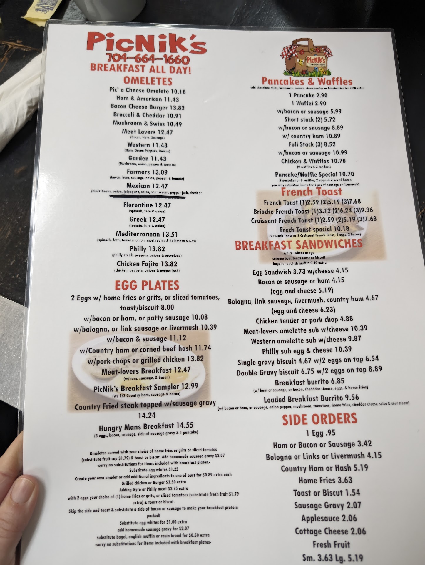 Read moreI'm giving this a generous 3 because it is not a chain restaurant and the staff was nice. We stopped in for lunch after seeing the 4.5 star rating. I first noticed the desert case looked nothing like it did on the website that said homemade desserts, it looked like single serves you would buy at Target or something and I thought I wonder how often the check dates on those, sure enough a lady got the banana pudding took one bite squeezed the rock hard vanilla wafers and sent it back. Waitress removed all remaining banana pudding from the case. Looking around a saw a bowl on the floorto the left bottom corner of the dessert cast to catch water dripping from the kitchen refrigerator, never a good sign. I ordered the southern burger for $8 with chili and slaw. I could be wrong but judging by the square edges of the burger and the texture I would say this was a frozen Patty. Slaw was an off white color with no flavor and the chili was nothing special. My wife had hot dogs and they were fine she said but she agreed about the slaw overall everything very bland. I would assume this place specilizes on breakfast and sandwiches so best they just take the burgers off the menu in my opinion if they are not gonna cook fresh good seasoned burgers for $8, honestly cookout burgers have more flavor than these block looking things cooked on a flat top. Personally I also have a thing about carpeted restaurants you can't really get every nook and cranky clean so I find carpeted restaurants strange. Who knows the breakfast here might be great, I hope so because its great to see non chain restaurants. Also a little strange on the sub section of the menu there was no Italian sub option and the kids pizza is a ham pizza because they don't...