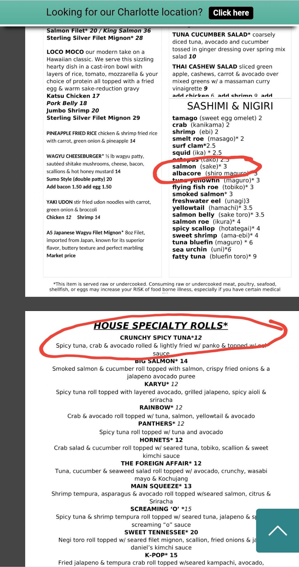 "I'm writing to let you know of my families recent experience there last Friday evening. We were in North Carolina visiting my sister and brother-in-law, who are regulars at your place. My husband was in the mood for steak and they suggested your place. Upon arrival we requested Brittany, I believe, as that was their favorite server, but we had a party of 8 so we couldn't fit in her section. Anyways-we were seated and immediately upon looking over the menu my husband asked our server if the Wagyu Filet Mignon listed at the bottom was "just a regular filet" and similar to the Hibachi one and was told "yes, I believe so." He then asked what it came with if anything and she replied she "didn't think it came with anything". When she came back to take our order she said she had asked and it " did come with mushrooms and vegetables etc..." My husband asked her if she could hold all of that and just do the garlic noodles my sister raved about and she said yes. Our 12 year old son doesn't eat sushi and loves filet so my husband told her that "my son will have the same thing". She then comes out with 2 large trays of sauces and places them down not even knowing what the sauces were. She tried but was unsure so I said she could take one tray back and we would sample the one left behind. The food began to be served and when my husbands was placed next to him we both looked at each other like " what is that?". It looked like a flattened ribeye. We didn't want to say anything because we thought maybe wagyu meant something different so they just started eating it. My son asked my husband across the table if his steak was cold too...my husband said it was luke warm. My son didn't like it, so my niece at the table ate his. We were then presented with the bill only to find out that our -non filet--flat cold meat was $101 each! Now I understand market price means it could be a little pricier but seeing that the filet for the Hibachi was only $28 we didn't think it would be much more than that. $202 for food that we were mislead on is a LOT of money ESPECIALLY for a 12 year old boy. I feel at the very least the server should have said something after we ordered for him like "I just wanted to make you aware that that is a $101 dollar meal..." Nothing was said AND at the end when she heard us discussing the bill she even apologized saying "it was the first time she had ever served it". Then after we left we googled Wagyu Filet only to see that it DOES indeed look like a traditional filet...so what were we even served :(