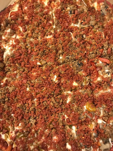 We ordered a large pepperoni and sausage. The staff was super! The dining room was clean. They were busy too! They offer paper plates if eating in.