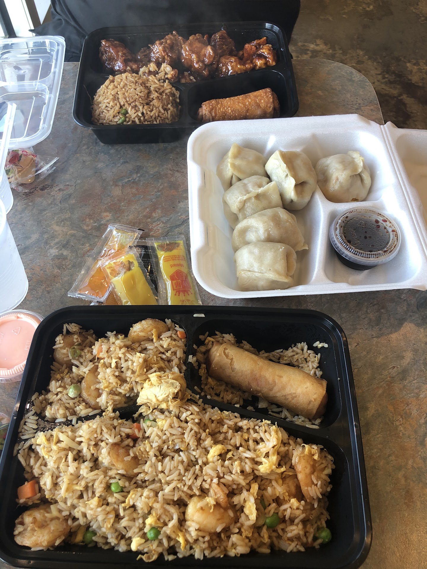 Read moreI was here today because well I’m pregnant and the little babe wanted hibachi chicken with broccoli and shrimp sauce. So the place I usually go to is closed (Christmas Eve) and I look up other places near me and this store was open. I look at the menu and I saw Steamed Chicken with veggies I thought well maybe if I ask them to make it how I like it’ll turn out good. I call them up (I was in a hurry) and the nice man said everything was good to go and he repeated everything back to me so I send my hubby in to grab the food so we can hurry on our way. He comes out and I smell beef I look in the box and it looked like beef with broccoli it surely tasted like beef with broccoli and so we tasted a few pieces and it was white chickening the middle. I mean this was so confusing to me I think it was just a heavy sauce? Tasted just like beef though not bad flavor just not what I ordered. So I sent him back in to get what I did order and I’m munching on my crab Rangoon in the car. I could tell they buy it frozen in bulk because I love crab Rangoon, I have had it from several stores. Hubby come back out he said they made me a whole new tray. So I’m excited and I look in there and oh my goodness..... it was literally shaved chicken that had been steamed! It looked soooo disgusting. I told him that we would just have to be late to our family’s party because I had to rush home and finish cooking this weird chicken. Ugh it was gross. So I pick out the chicken at home I put it in a fry pan on high heat I put the provided soy sauce in there I browned it up and cooked it really well then I added a little duck sauce and I spread out my rice in my to go box I put the chicken on top of the rice out back on the broccoli and then dumped my (extremely bright pink looks like pepto bismol) shrimp sauce in everything and it tasted a little better. I’m sure this place has great food but this was a total fail. It was my fault I’m sure of it but just to let other customers know - do NOT order their food Togo without looking at it first and if you’re a first time customer definitely eat inside the restaurant.... portions and price...