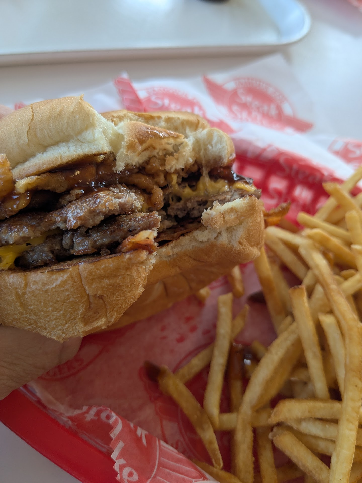 Read moreFirst time customer. Was exited to try the beef tallow fries. Went inside to dine and were greeted with kiosks, not humans. It felt cold and uneasy. When I went to order my Frisco Melt, I wanted to add pickle, but there was no option. My daughter Ed ordered a garlic burger and it allowed her to chose pickle or remove it. That was odd. The meat was good, but both sandwiches became soggy very quickly . The garlic butter they put on top of the bun made it very messy to eat. The fries were not as good as expected. They are so thin you hVe to eat 4 at a time to have anything to taste. Since it was our first time being there we didn't know you had to scan a code from your receipt to use the soda fountain. It took awhile but we figured it out. I stopped to let the fizz of the root beer settle, but I couldn't fill my drink up all the way, because once you stop, the machine stops and you need to scan your code again. It was just a hassle. When ordering at the kiosk, it showed we could get a free shake after 4pm. So once we ate, we went back to order the free shake. My app showed I had a free shake, and a $2 off to redeem. It wouldn't let us choose the free shake, so we asked for help. The employee didn't know what to do, so he got his manager to help us, which she wasn't any help either. She said maybe they want me to use the $2 coupon first. I asked if she could go or my free shake and she said no, there was nothing she could do. So I paid for my daughter to have a shake. Our overall experience was not enjoyable. The customer service was lacking and cold just like the atmosphere. I do t think I will be traveling an hour away again to give this...