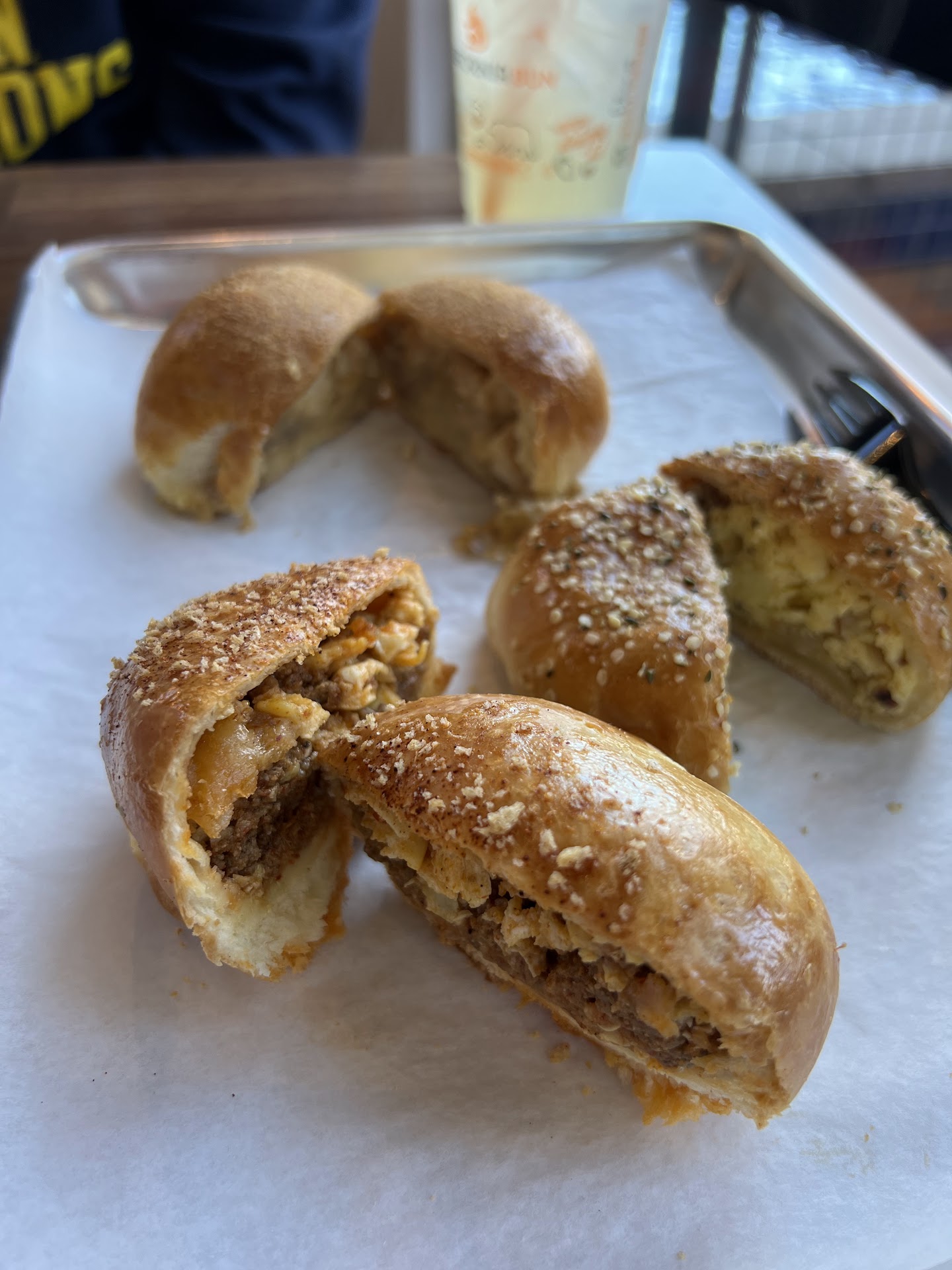 We had three different buns to try half of each. Definitely taste of fresh dough made at shop. Baked well! Nice combination of filling. It was easy breakfast.