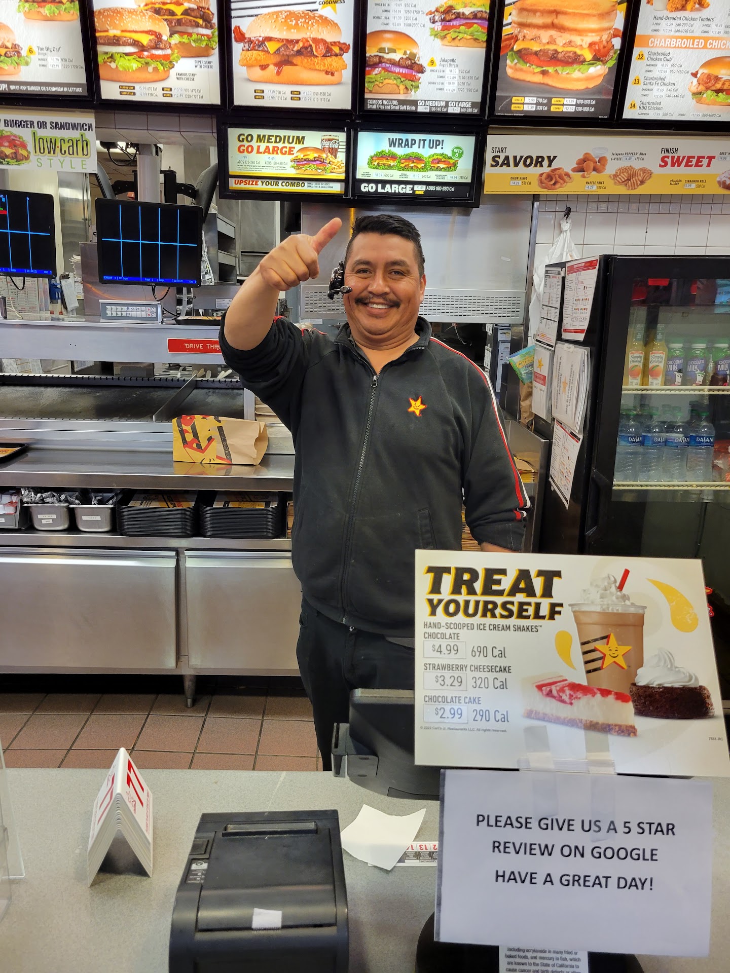 Read morehorrible experience, looked like a bunch of fried high school kids in there who dont even know why they are there i doubt they know theyâre getting paid to serve my food. I order and dont receive my meal till about 15 minutes later in the drive thru while it is empty. Fried kid in the window just hands me the food and walks away while i dont get my drinks. I go inside to ask for them since there was no one in sight and same fried kid just hands me the cups without saying a word to me. Highly recommend anyone to go to another carls jr because these same people arw the ones makinh your food and it seems like they are fully lost and have a...