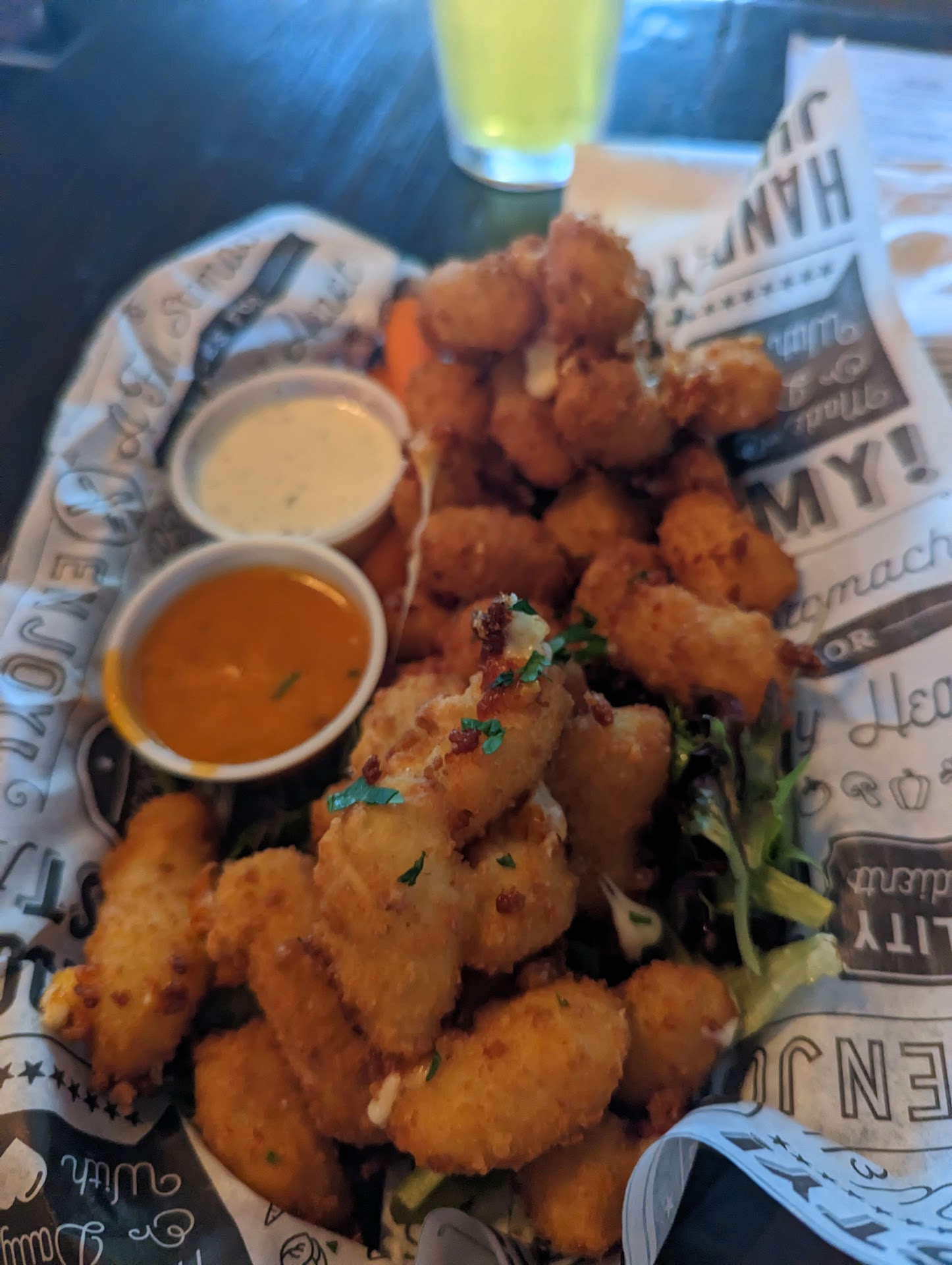 ย ย ย Read moreUPDATE: June 9, after reading about "Cheese Curds" in other reviews I had to find out about them. HOLY COW, how have I gone through my life without them. Deep Fried Mozzarella does it get any better then that. No, it does not.