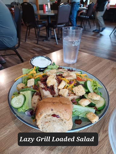 My wife ordered the Lazy Grill Loaded Salad, which consisted of MN greens, grilled chicken, tomatoes, cucumbers, smoked bacon, curmbles, red onions with shredded cheese and garlic croutons. Her salad came with a cranberry roll wild rice roll as well. She LOVED her salad.