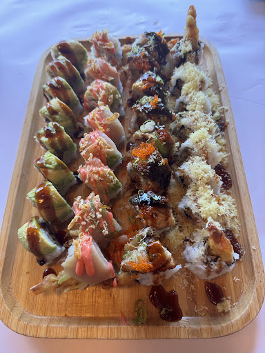 We eat here all the time. It's our favorite sushi place in the whole area. The all you can eat is a great deal! My favorite's the cherry blossom roll and the diablo hill (green onions and crunchy bits, oh my gosh, unexpected.) Roomie likes their take on the 49ers and their specialty roll with steak on the top. Good fusion dishes. Good "traditional" sushi rolls. Also, they put little flashy lights under their sashimi, and that makes me absurdly happy for some reason.