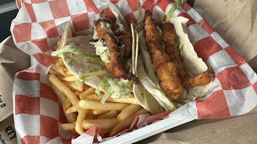 No it's not Dairy free and that is heartbreaking for my husband because the food is amazing! My husband tried treating & cheering me up with a trip & food truck food, even though he can't eat it. Super sweet. It worked! The food is delicious Hot, fresh and flavorful The homemade garlic oli on the white fish tacos.. chef kiss! Absolutely could buy a jar of it! That's what makes these tacos better than Pink Pony on mackinaw Island (those are super non breaded delicious too) and that's saying something I'm a palet foodie. I'm not really interested in the size but the flavor and experience that food triggers. The tacos are fantastic. I do not doubt the vension burger would be as great especially with it being fresh. Hopefully one day no dairy in the buns so others can enjoy this food. I feel so guilty he can't. The guy working the window had great customer service Its a refreshing place An environment that doesn't exists in most food places anymore.