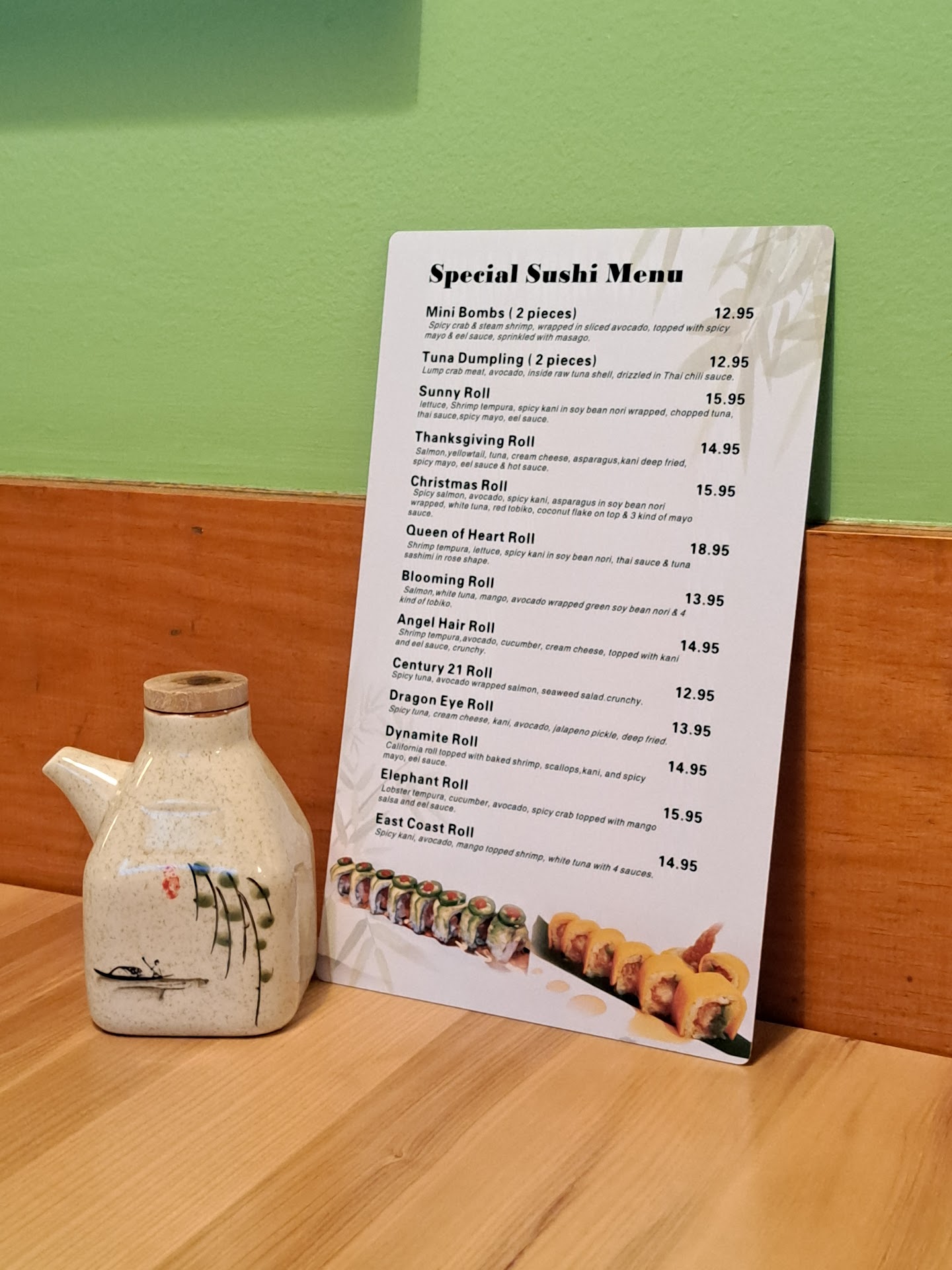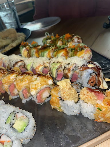 4 stars overall. Food is a 5, but service is a 3. Our waitress was good, but she was stretched too thin, covering too many tables. She was knowledgeable about the menu, but she didn't spend much time with whenever she came back to us. She was always rushed. Granted, it was Saturday evening during the summer, but the restaurant wait staff wasn't staffed appropriately for that time frame. Sushi is phenomenal and Hibachi dinner was very good as well. The sushi appetizer came out on time, dinner did too. But our salads and soups, that come with our entree, didn't show up until more than halfway through our meal. What's even worse is I ordered a drink about 10 minutes after the others at my table did, because I was deciding what specialty drink I wanted to try. After 30 minutes, the drink still hadn't been made. In fact, it wasn't ready even half way through my dinner, so I eventually canceled the drink. I asked our server how many bartenders were on staff at that time. She said only one. She told me that the lone bartender was making drinks for the wait staff, the guests in the entire restaurant, the patrons at the bar. She also said that the bartender also waits on two tables near the bar, serving food, etc. Ridiculously overloaded. This is why my drink did not come out on time, or even close to it. There is no doubt that they need two bartenders on a busy Friday or Saturday night. They also need to give each server a smaller area to cover so the service is better. Again, great food...
