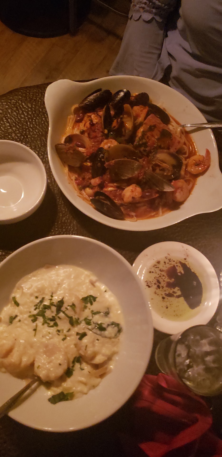 The service was below par. We wanted to have a great night so we didn't complain. I got the bill and to my surprise I paid $60 for shrimp and scallops that tasted like they were a month old. I don't mind paying if it was fresh and I was able to eat it. The salmon and pasta were so cold, it was sent back to the kitchen, I wished I had taken a picture of how it was brought back. Nothing was fresh.