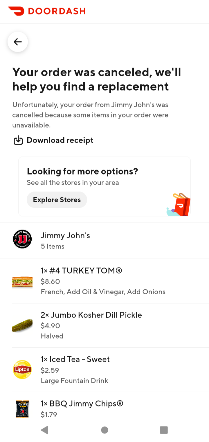 Read moreOrdered online .. 10 before close got to the store 5 till . Didn’t think it would be a big deal since they usually get the subs made very quickly and would in and out before they closed. I was wrong they locked the door already . I got the cashier’s attention when she realized I had ordered via the app. Let me in and explained that they had closed the kitchen early , she kept telling me it’s ok it’s ok . I guess for her it was since she got to close early but stayed on the clock till afterwards it seems. The only upside is I got offered a refund but I won’t see it for three days . Young lady explained that if I called ahead she would let know if they were closing early and that it’s ok . I asked why not turn off the online like 20 min before close if so….. the reply the owner had to do that she could not . Owner may not even know why he’s not getting orders in...