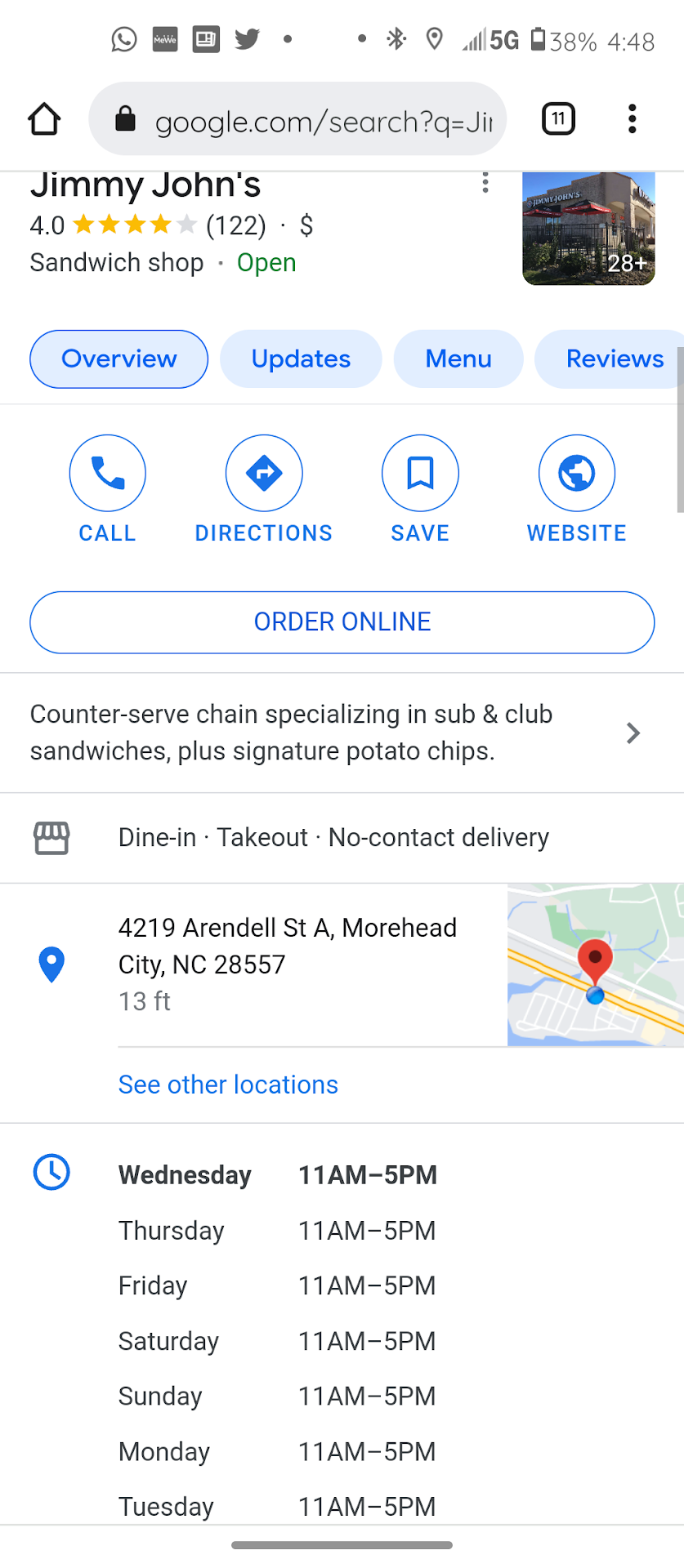 Read moreThis store was very clean. The staff are extremely nice, friendly, and helpful. The food was excellent. They have the best subs I have ever had. If you are having a get together and need someone to cater it I would most definetly recommend this Jimmy John's. The drivers are very friendly and very fast when you need your order delivered. The manager is one of the nicest ones that I have met in a long time. And the staff are very patient and willing to explain what exactly goes on a sandwich. This is a very family oriented sub restaurant. Like I said earlier they have very friendly staff and the bread is always fresh and so is the product that goes on to the sandwich. And the pricing is great for the value. The drivers are very fast also with deliveries. I would definetly recommend to all my family...