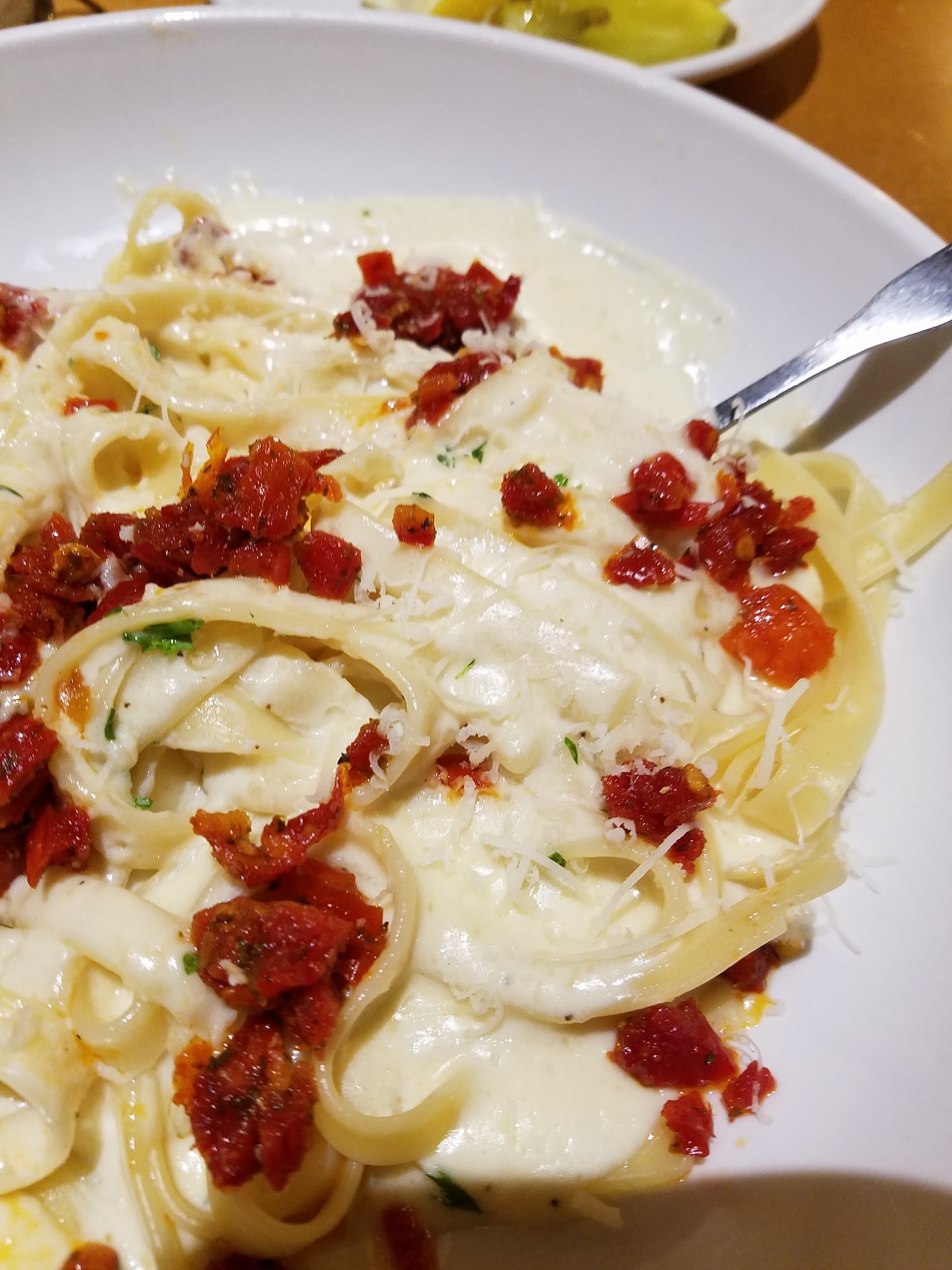 My poor waitress...olive garden is something I really enjoy..mainly because of the big salad...but I like the enviroment and it's a family place and has somehow a touch of class...the food isn't all that..microwaved fried chicken cutlet over my pasta isn't my idea of ideal Italian American cuisine...but I do like some of the pasta dishes and I'm a big salad fan so I still support a restaurant for having a good Salad and though I am big into dark leafy greens and rich ripe olives and oils and herbs and cheeses...I still enjoy the olive garden big green salad and bread sticks...cheap generic and served way too hot to be eaten by non-robots...olive garden remains to fall in my ratings and rank...my poor waitress took it personally that I gave it a low rating...she said that it would go to her boss and look like she had performed poorly..she didnt..she was fine...but I really didn't like the ordering process or options...the food I ordered cost me about 20 dollars that night and they had the same exact dish to go for 5.99...why am I paying 20 dollars to eat a 6 dollar microwaved dish? If the girl needs 5 or ten dollars I'd be happier to take her out on a date than to have to waste my money on olive gardens food..it made me feel a little ill too...so..next time..I'll just pop in and have the big salad and bread and maybe take one of the girls out to get a proper meal too. She was cute and the fried chicken...