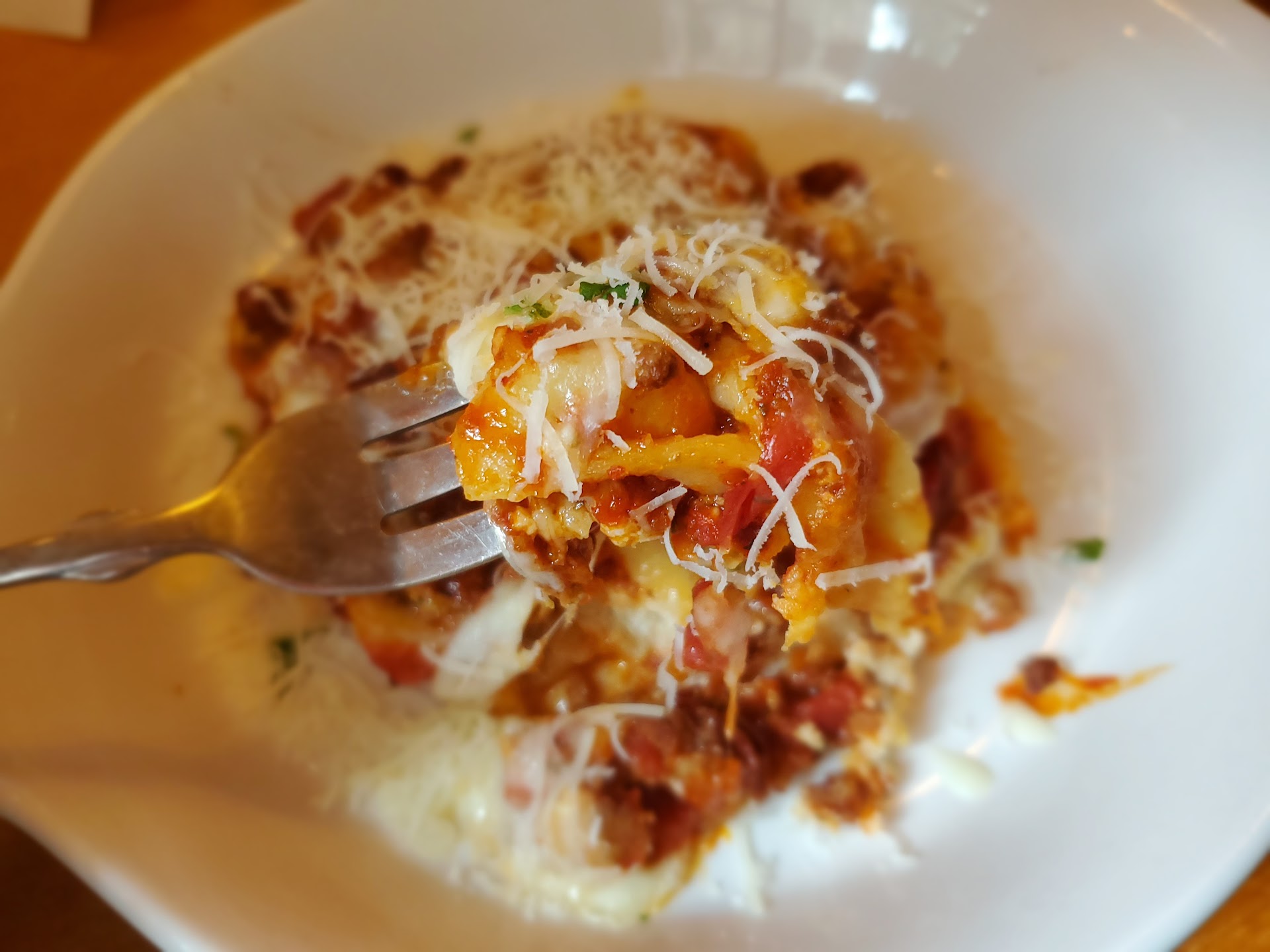 I ordered the duo lunch lasagna for take out. I called ahead and my food was ready when I got there. The hostess bagged my food In front of me so I could see that my order was correct. I was given breadsticks, soup, lasagna, cheese packets, silverware, and a mint. I loved how the process was and the hostess was very friendly. Great service. Keep up...