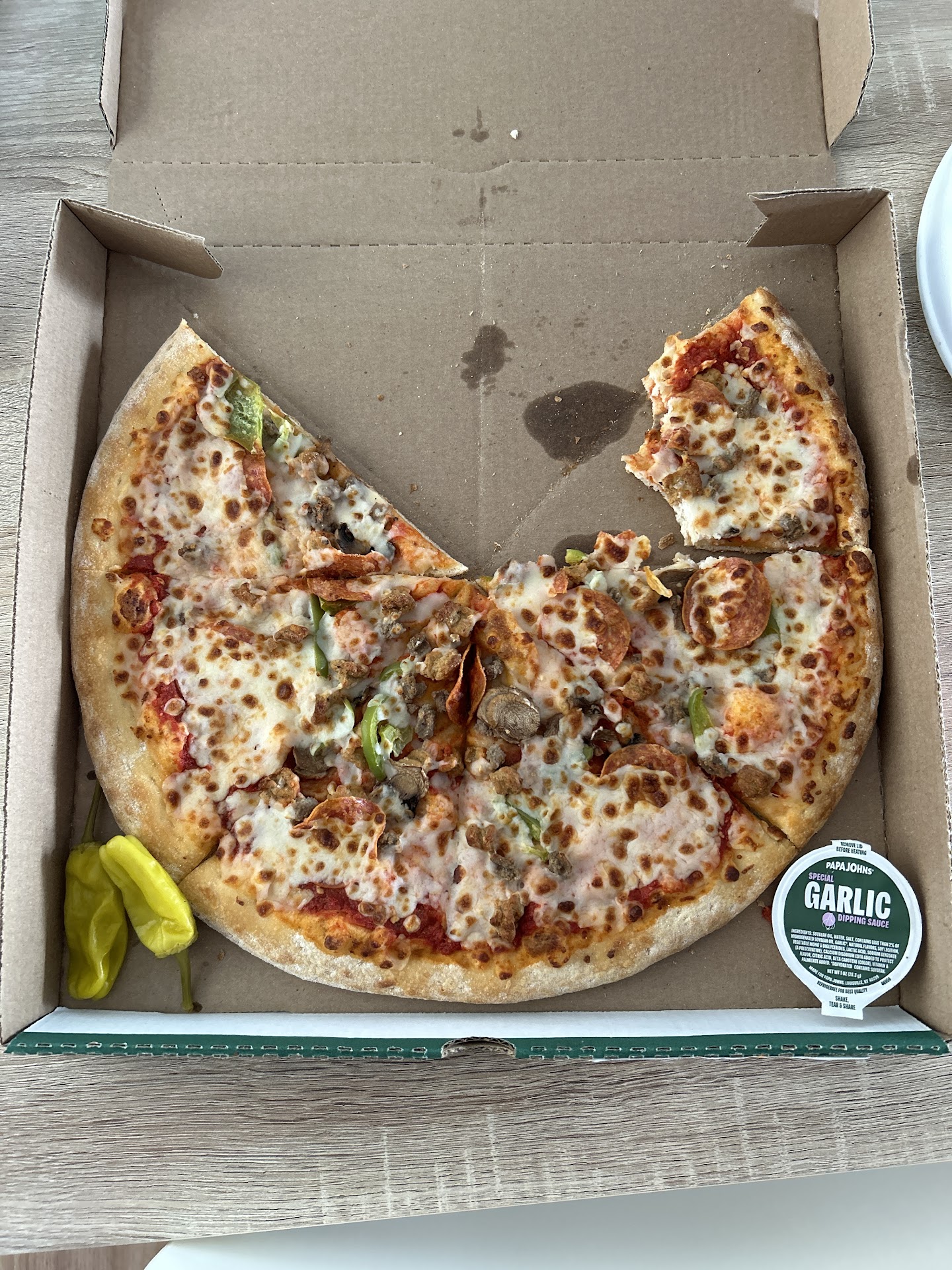 Good pizza, horrible service. I've been waiting for almost 2 hours for my pizza. Papa John's says they are waiting on door dash... Well if you can't afford to pay your delivery drivers and do not have a reliable way to deliver pizza, I wouldn't offer delivery to customers. I've had nothing but trouble with papa John's the past 3 or 4 times ordering from them. Last time I called to add a cookie dessert to my order, the cookie got delivered separate and came first and I paid 15 dollars for it because instead of adding it to the existing order she made a separate order which I had to pay another door dash delivery fee and tip for.. for something that should have cost 7$. This will be the last time I order from papa John's until they figure out their delivery issues. This has been a...