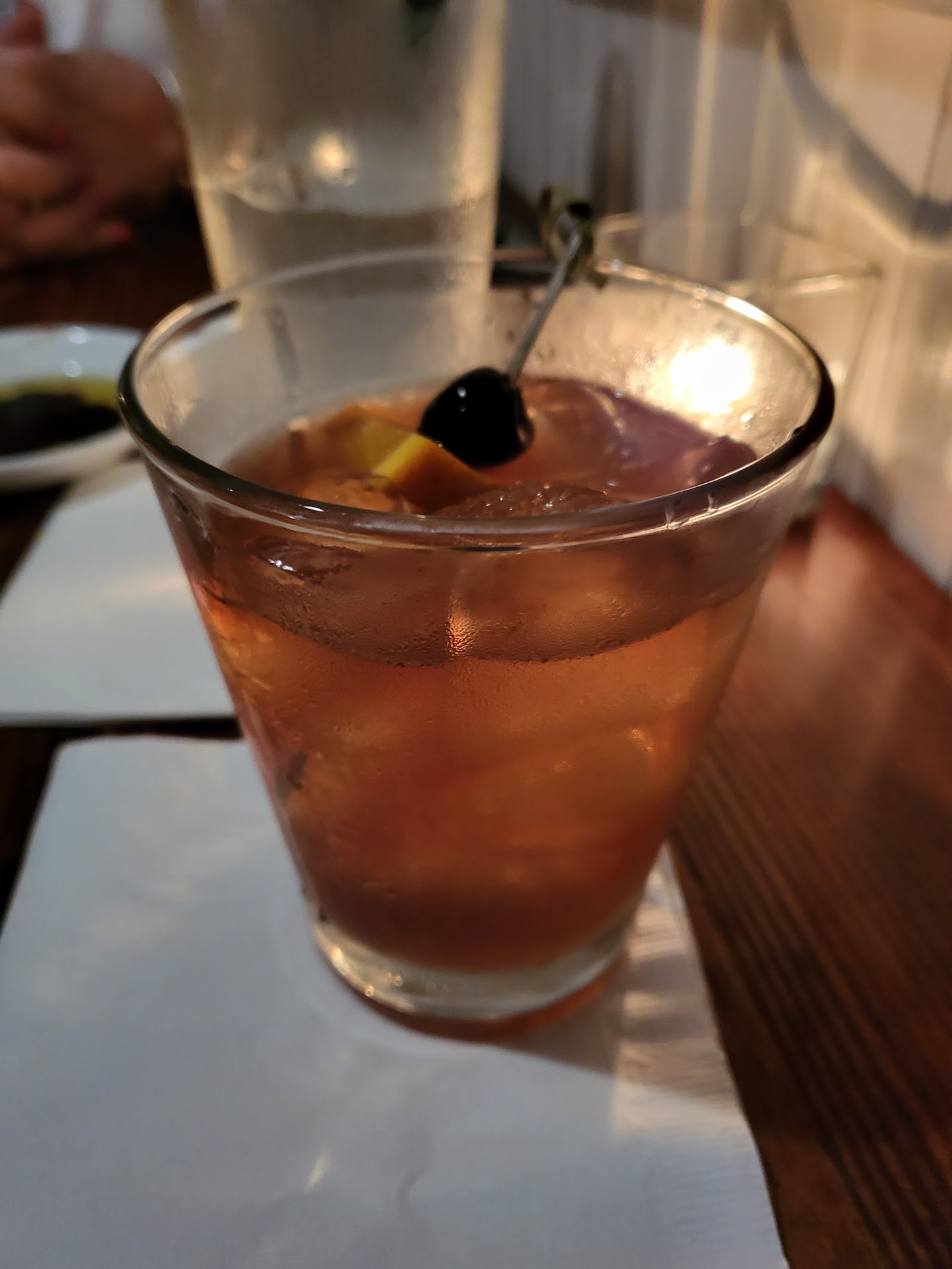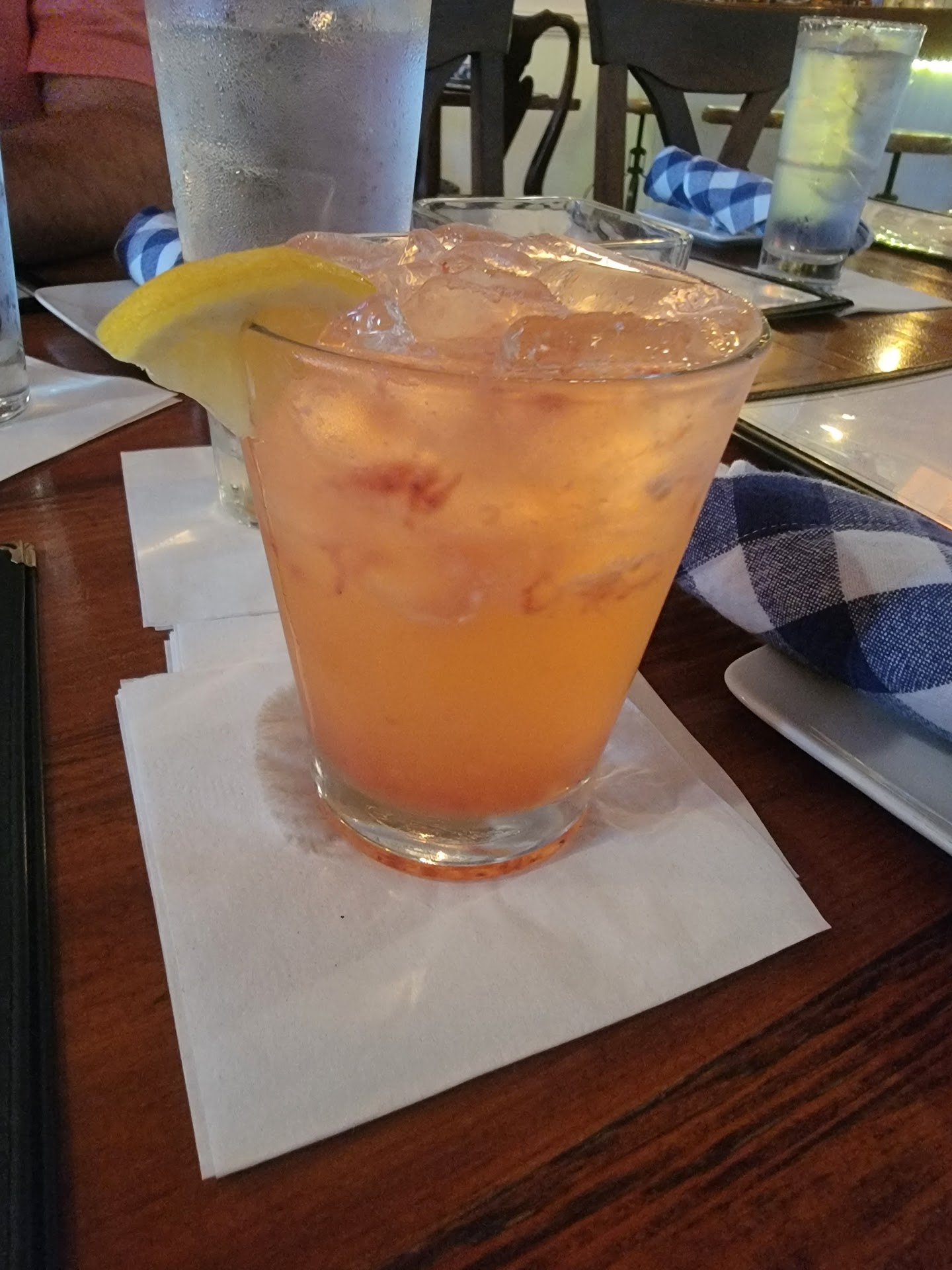 So we tried a lobster corn chowder for our appetizer, the stuffed salmon, shrimp and grits, the duck breast, the chocolate cobbler, and the strawberry cheesecake. The chowder was almost all potatoes with little pieces of lobster chopped and placed on top. The taste was decent but had a slight earthy flavor, and it was a light brown color. We were told the shrimp and grits came with shrimp and peasant sausage. We found out later, after asking another server, there was no peasant sausage in the shrimp and grits. It had a great flavor, but the misinformation detracted from the experience. The stuffed salmon is actually not stuffed. It is served with a crab cake on the side. Our crab cake was actually overcooked on one side, and the vegetable side was burnt in places. The risotto side was quite delicious. The duck breast was ordered medium but actually came out slightly medium rare but was very enjoyable. It was accompanied by a mashed sweet potato, and we subbed out the spinach for asparagus. Both sides went very well with the dish and were cooked perfectly. The chocolate cobbler was a letdown because we were told it was like a brownie, and what we got was nothing like a brownie. The strawberry cheesecake had the essence of strawberry, but there was no visible evidence on strawberries inside the cheesecake. We believe it was made using strawberry extract. However, the taste was very good, along with a spot on texture. Sadly, our experience was reduced because we had to get other waiters to help us out over our assigned waitress, and our waitress gave us wrong information about several disshes. We found out the right information after asking other waiters. The atmosphere was disconjointed in our opinion. It had a nice bar atmosphere, but the menu and waitstaff were more along the lines of a fine dining establishment. We also found the room became kind of muggy and warm when the tables were filled up. This may have been due to not cutting the air conditioning system to a lower temperature to accommodate the...