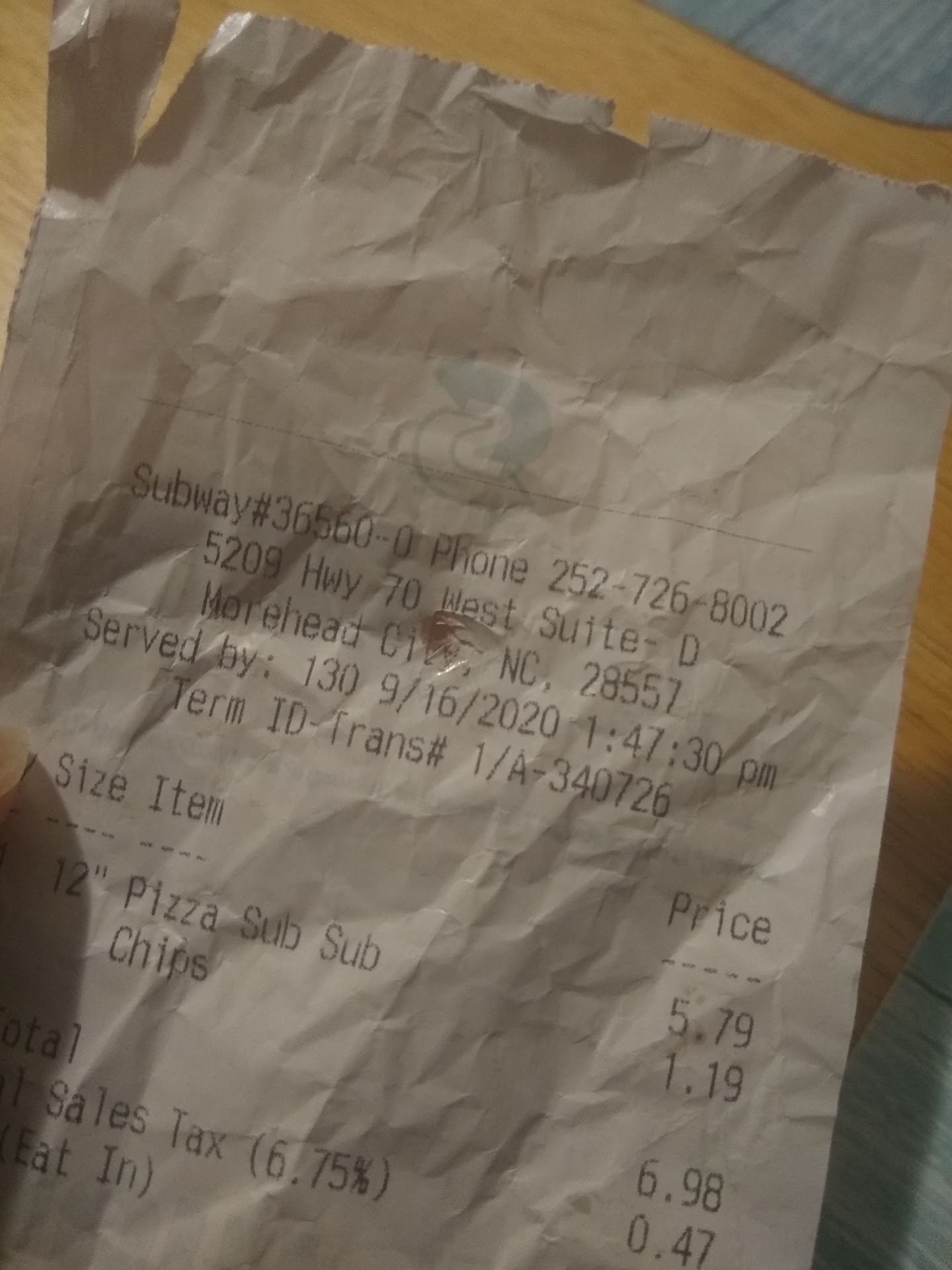 Read moreThe man Robert who works at the morehead city store is very rude and doesn't know how to make subs or train people. Last week I ordered on line and it was wrong. Called back and Robert answered with hostility and said come back I will remake I was unable to come right back. So he said come back next day. So we did. He remade them. Which brings us to today. Ordered online again. Orders extra meat and barely got any meat at all on a club. Suppose to be 3 types of meat. Along with the toppings which were scares too. But when I went back to store. While explaining myself to other associate Robert was very rude. Fussing that I got what I ordered and didn't see anything wrong without even checking the sub first. Then proceeded to say I. Should have called them in. But yet they were to busy to pick up the phone. Then told me to talk to a manager in the morning. Refused to give me the number and told me to figure it out. So after I go back in the morning to get my refund. I will have to find a better sub shop. Sorry for tipping you Robert. You should practice on being nicer. Cause with ur attitude nobody wants to be...