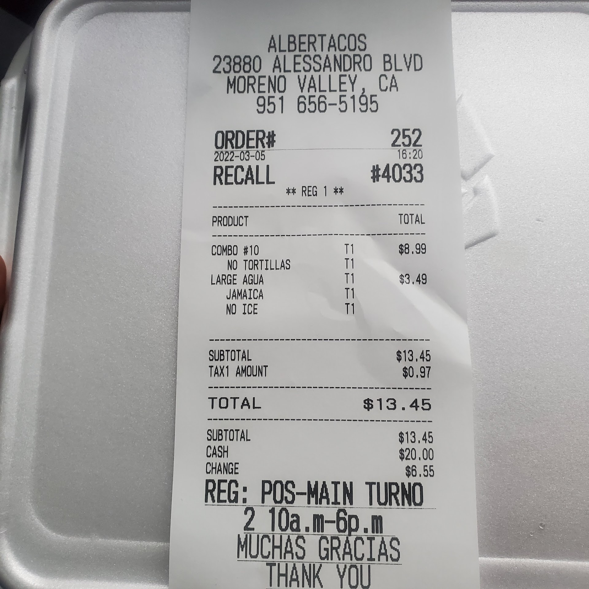 I ordered 2 Carne Asada Baked Potatoes, 6 Rolled Chicken Tacos with Guacamole and Cheese, and an extra order of Sour Cream and Guacamole. When I finally sat down, I find that both Potatoes were still raw and undercooked. So only the meat, cheese, and sour cream were the only things edible from that. I was also missing the extra sour cream.