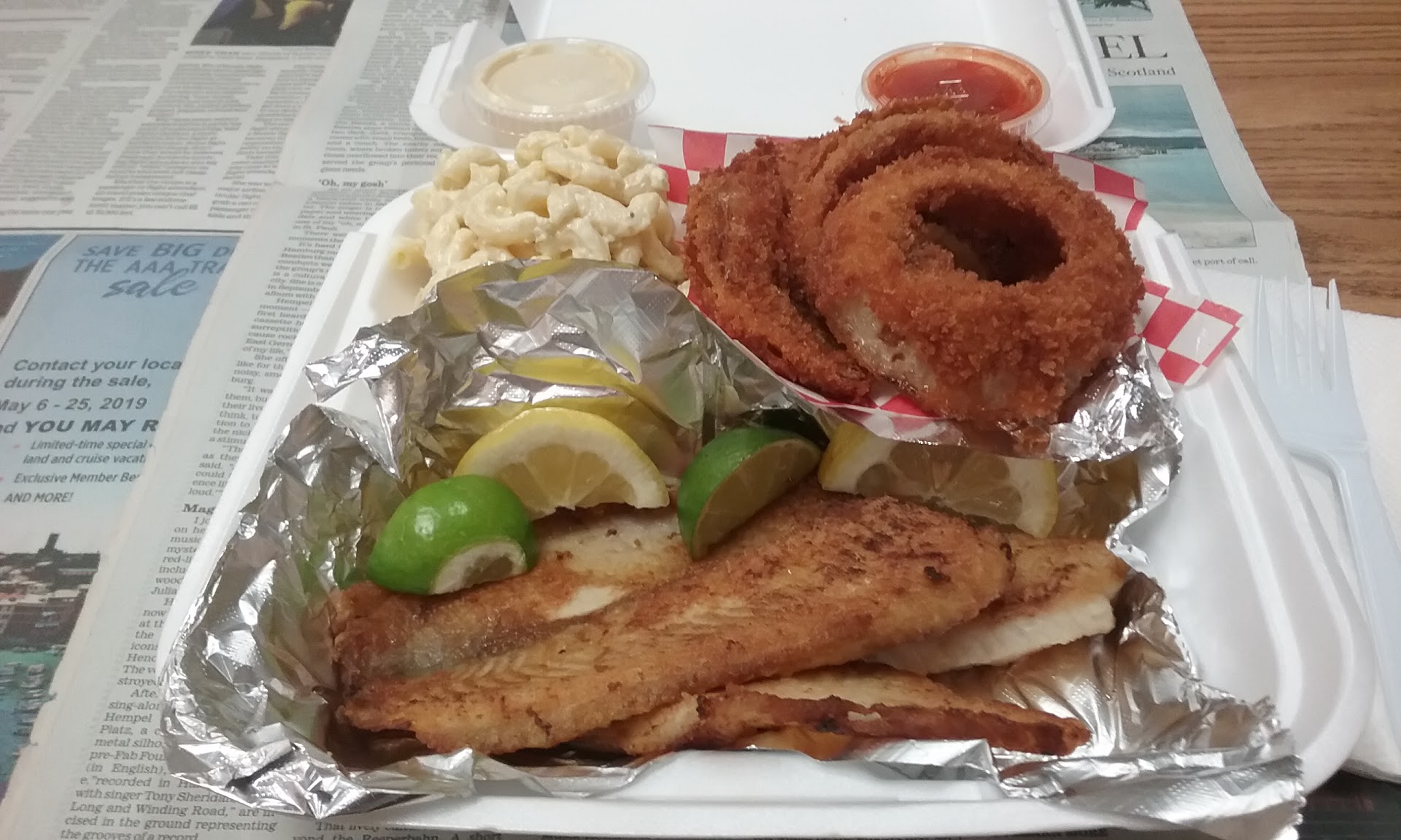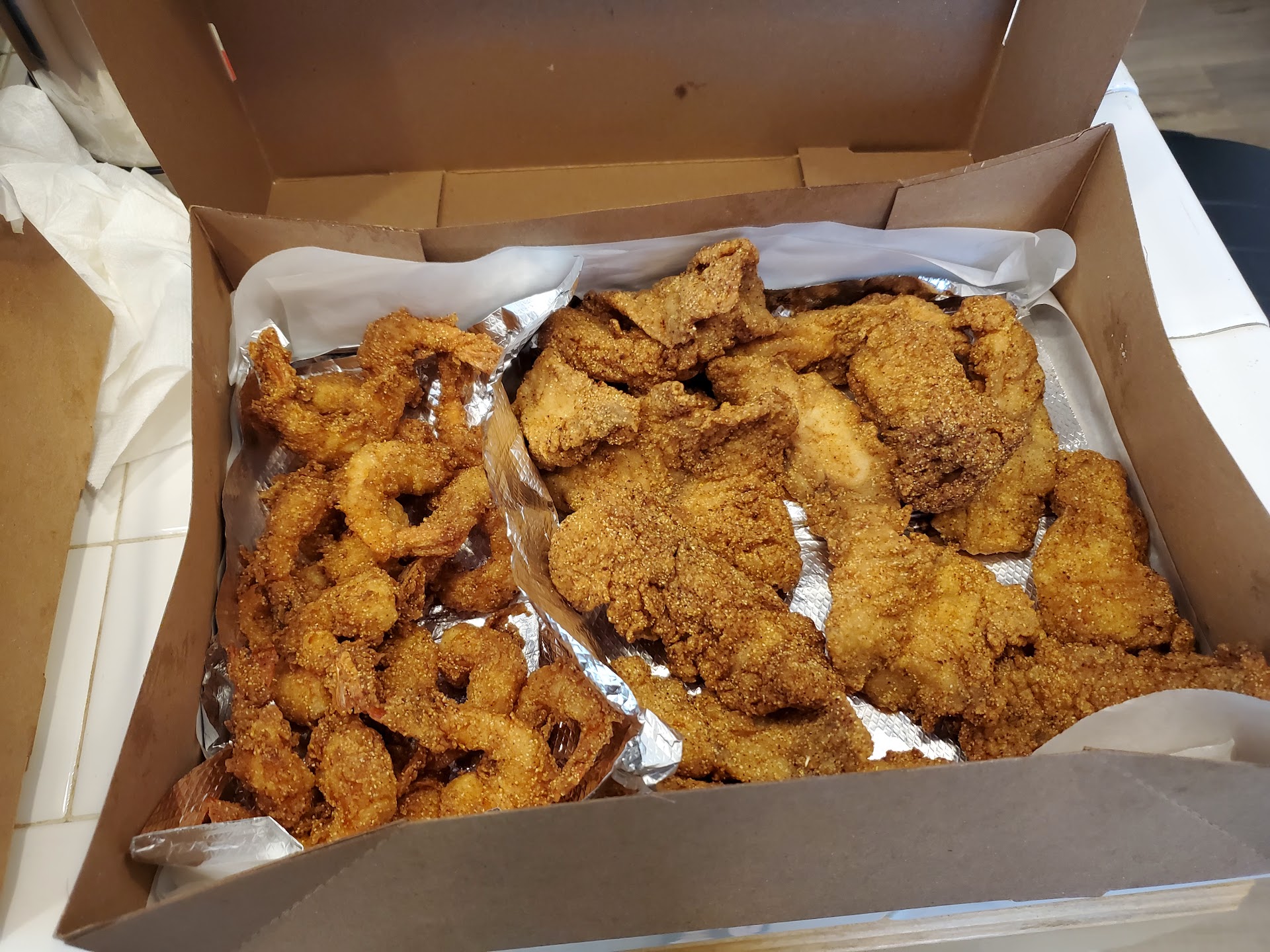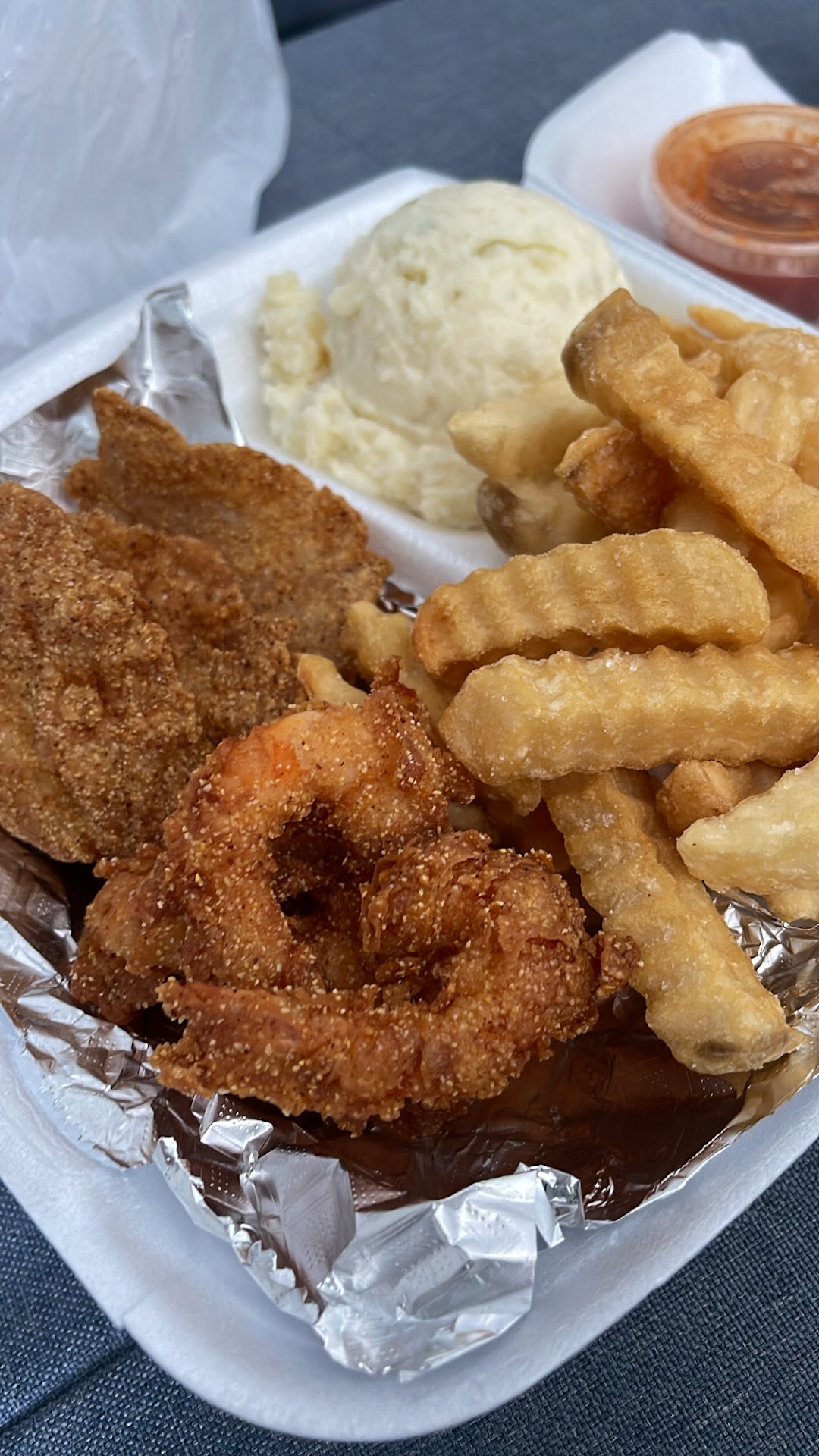 Ā Ā Ā Read moreWorst fish + chips I have ever had!! I ordered $50 worth of a little bit of everything for 3ppl. Never in my life have I thrown away a meal vs. saving the leftovers. The fries were great. The potato salad was good. But the batter for the fish (I got catfish + tilapia) was so overly-seasoned w/pepper + Idk what else that it was disgustingly inedible! The ingredients for the "hush puppies" were indiscernable--& I am not retarded; usually I can discern them well! I do not eat shrimp but the 2 other ppl at my table did not finish the 5 I purchased (normally-sized ones; not jumbo). Allow me to inform you that the cole slaw was wretched! It is not easy to ruin cole slaw--but Big Fish Market did it! Do not eat here UNLESS you purchase the fish raw in order to prepare + to cook it yourself at home, or wherever!