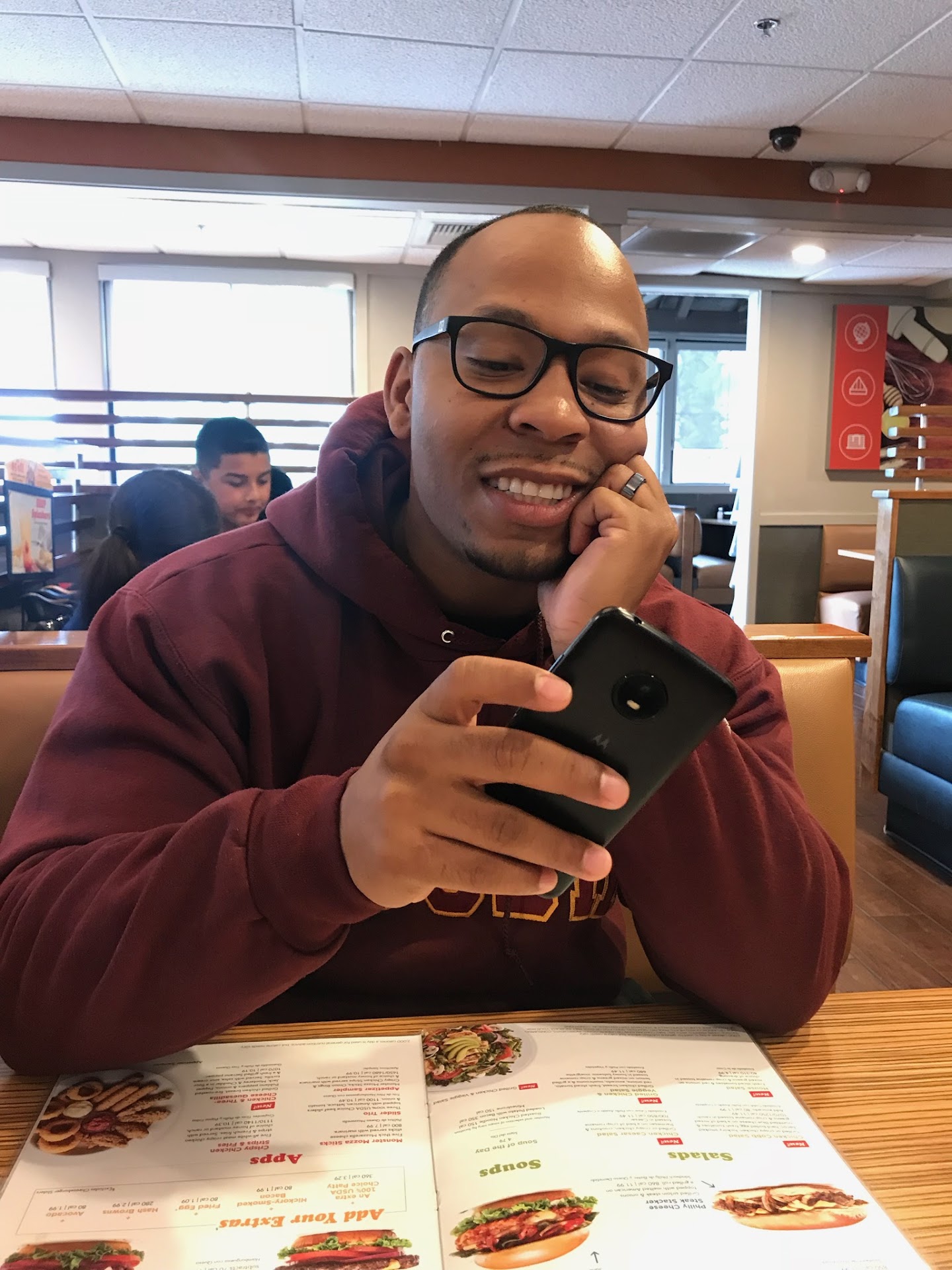 After being seated at table for 25 minutes I had to get up and find a server to get water and place our order because they forgot about us. There was a group of 6 guest hovering on the side of our table for 15 minutes after we arrived because the bill was over charged. They ran out of straws and my water glasses had a finger print along the top (I couldn't drink it) but the rest of the food utensils were clean. I asked our server about the tooth pick that was obviously left over from a previous guess and was used (my kind way of pointing it out). He told me it was from a previous guest and whoever bussed the table did clean the table good, then he walked away, left it,didn't re-buss the table at all, I had to us napkins to remove it after our food came. There was salt or sugar spilled all over the table next to us, servers walked by it several times and not one cleaned it up. The seats had crumbs, trash in them, even had a paper covering for a straw which ask the question 🤔: they don't have straws, then how long has this covering for a straw been sitting here and the table didn't get cleaned properly? The floors were also un swept which would appear for at least a day. The serve bussed another table on another row beside us and left chunks of food on top of the table (it wasn't small at all). They never came back to check on us not once. That was my enter to exist lasting about 1 hour 15 minutes. I very rarely give bad reviews, but this place has to be the worst that I've been to in years. I could understand if they were understaffed but there were 5 servers, one hosting person and 9 guest seated at tables. Place wasn't packed, not busy, not rushed at all. The second servers computer station was right next to us and they continued to walk right by us clearly seeing that we didn't even have a refreshments served, I had to get up to get the hosting person an he took our order, they walked past the other un properly cleaned tables, one server didn't have a matching color outfit (everyone else was black and white, his was royal blue) we didn't even think he was a server and I was upset that maybe I could've flagged him down getting a order in at least. Very bad management! Need much...